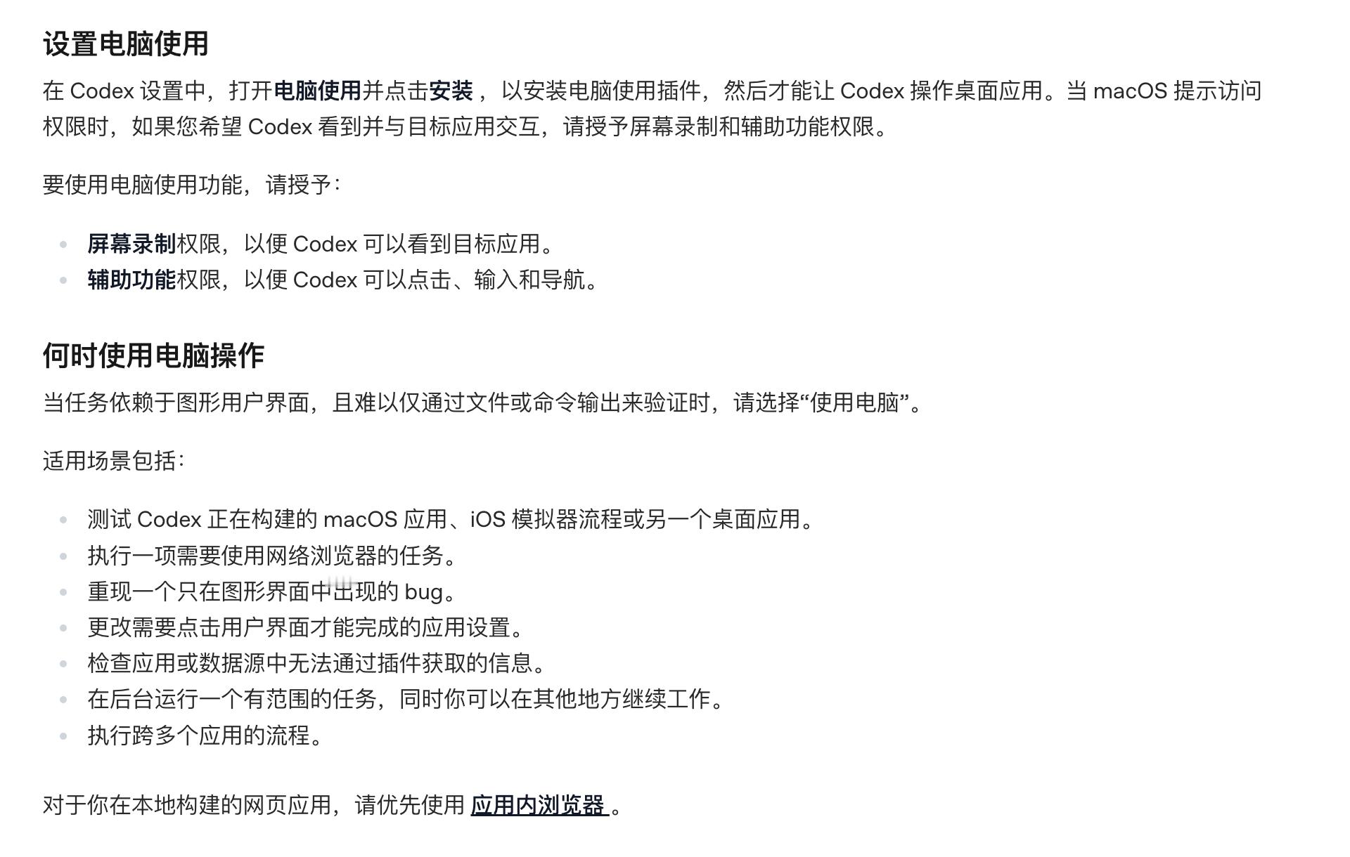为了防止有人不知道,Codex 的 Computer Use 需要在设置中开启,
