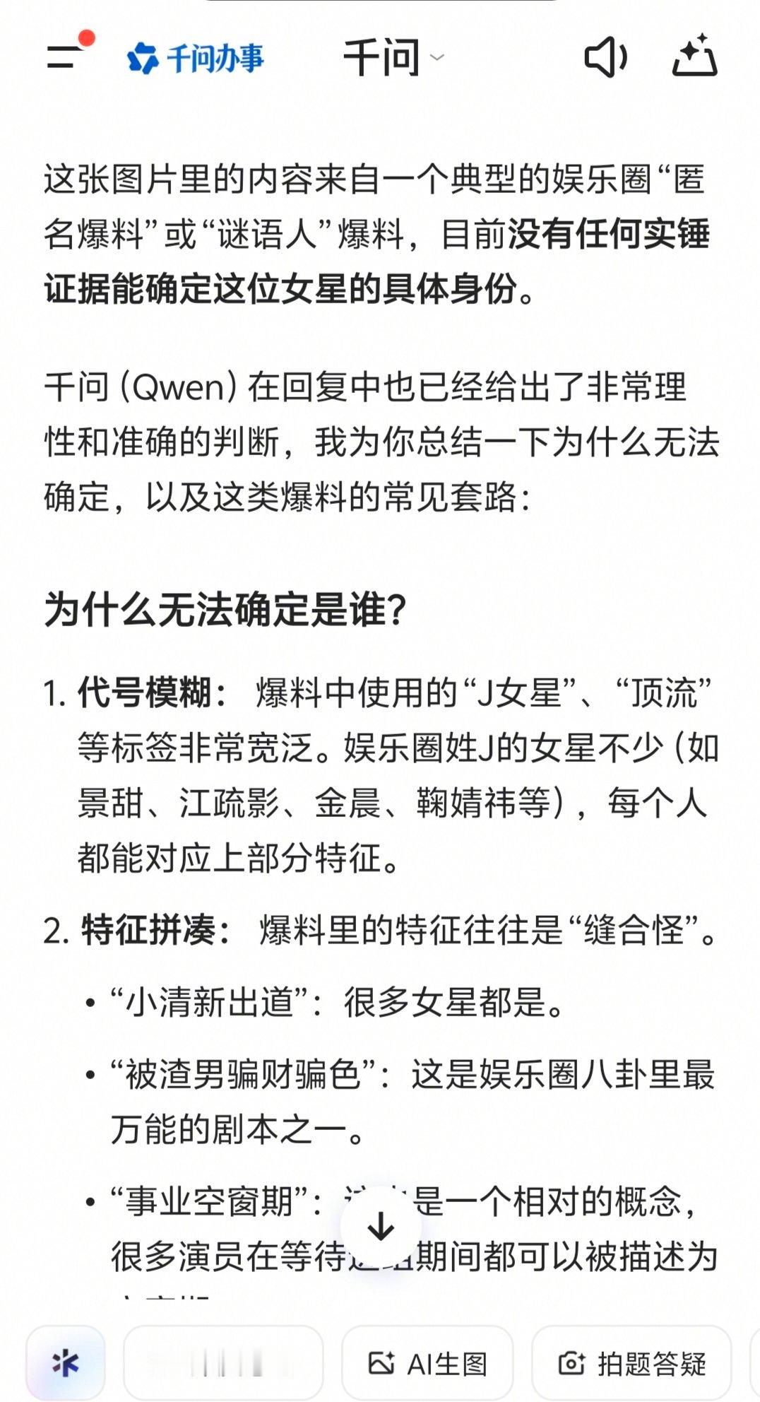 曝顶流女星借代孕生子向男友索要3亿 猜敏感的八卦上,豆包最谨慎,千问猜个大范围