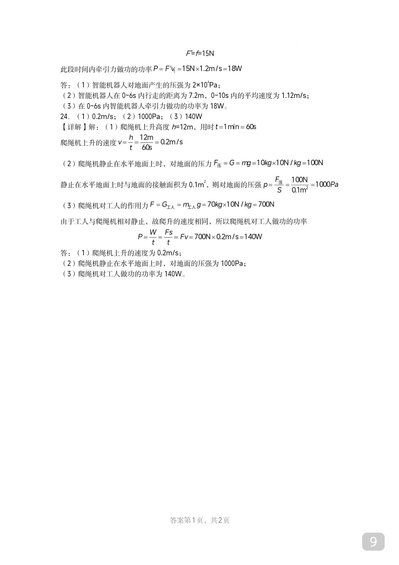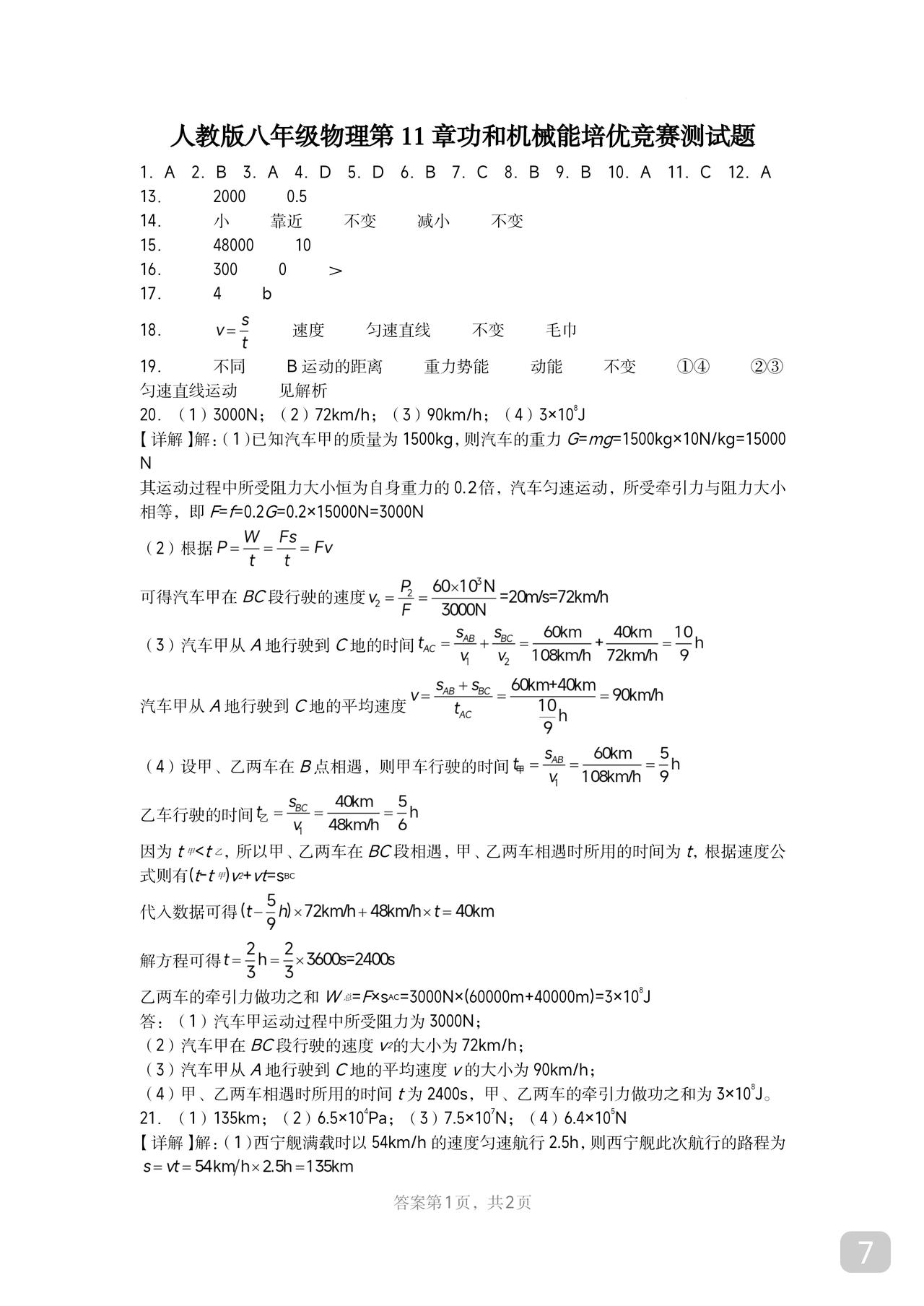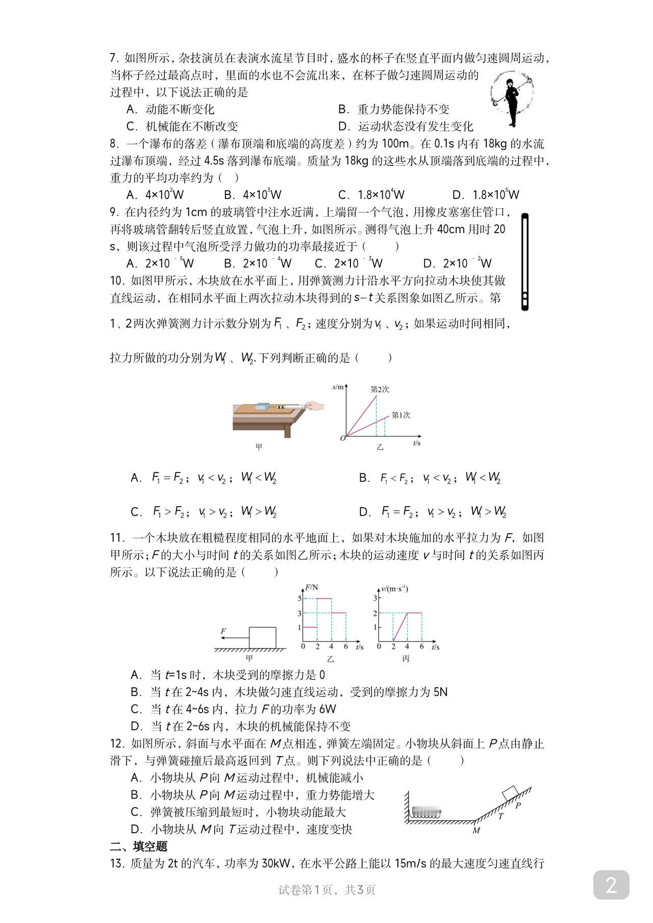 初二物理竞赛培优题 功和机械能 内行人都知道 这个章节太重要 跟高中的关联度极高