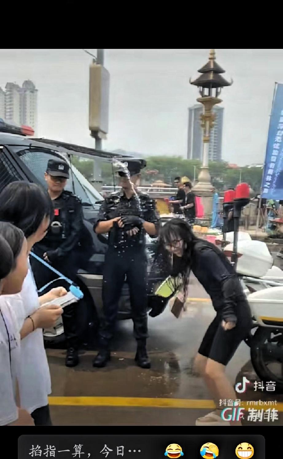 “上人民日报了!”云南西双版纳,一女子拿着装水的盆,问执勤特警“可以泼你们一下吗?