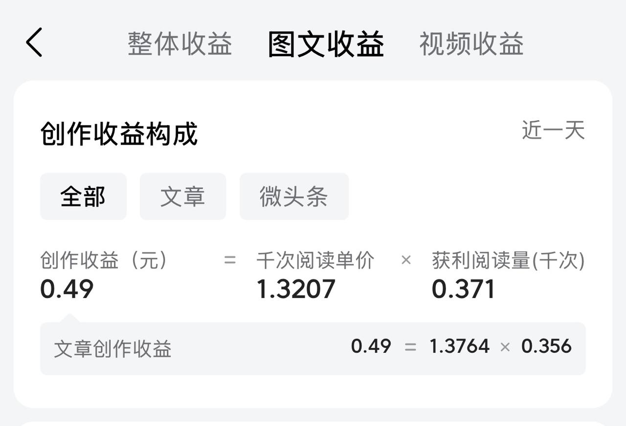 今天,我25万粉丝的大号,收益不错,将近0.5元,而我那个只有几百粉丝的小号,收益都不到300元,两个号的单价相差不大,收益却差别那么大。