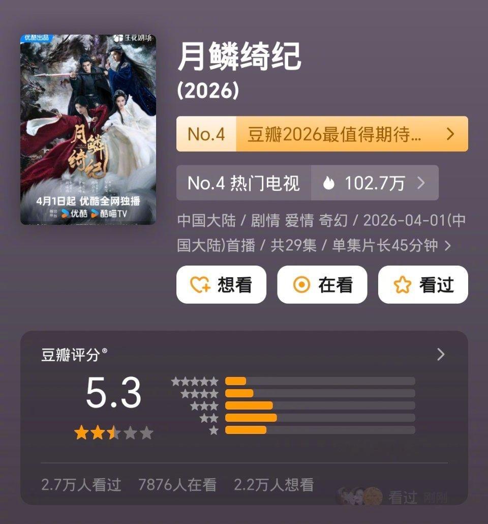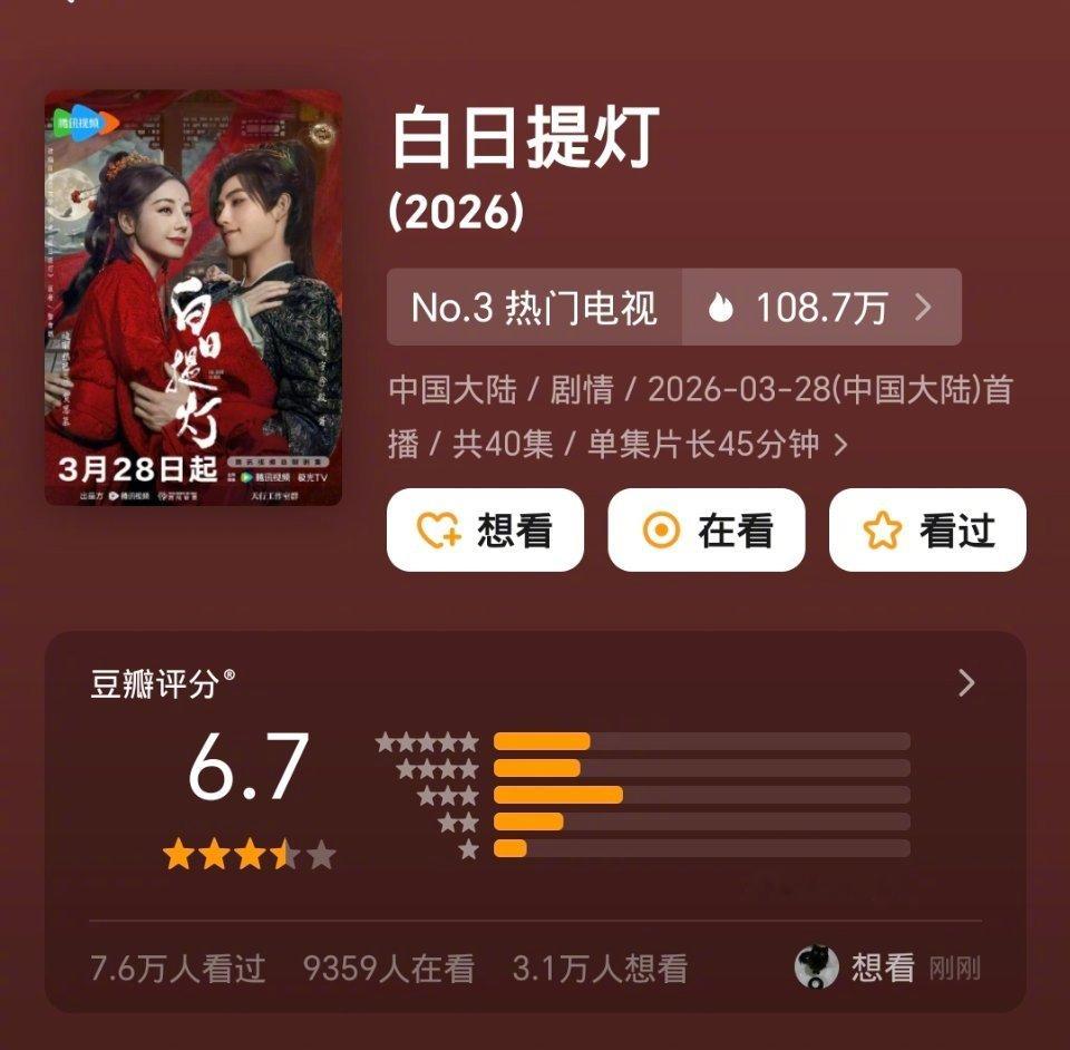 冰湖重生豆瓣3.2 白日提灯豆瓣6.7 月鳞绮纪豆瓣5.3 我要是李昀锐就退圈了,这么好的剧,还有赵丽颖等一众女星给宣,演成这样子;月鳞绮纪5.3算合理,鞠婧祎那演技实在不敢恭维;白日提灯高了,但没办法迪丽热巴粉 丝 盘 在那摆着,就算演的再差评分也不会太低。
