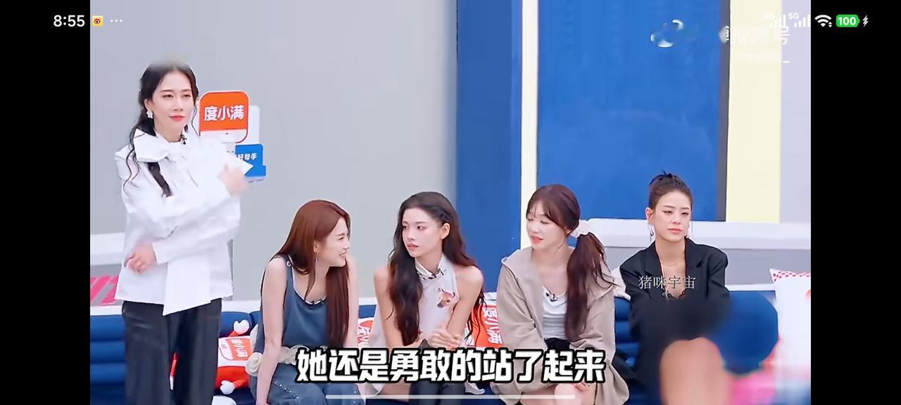 在后台时她也直言不讳的说:没有人选我,因为你弱嘛。包括网友调侃说唱得难听,确实不好听。最后剩下那4个人的时候,每一个人我都站起来,但他们每一个人都拒绝了我。我之前是个很强大的人,很知道自己要做什么,但是来到这个舞台突然间不会了。但这不就是发现自己的弱点,然后再去完善它吗?我们的人生就会变得慢慢完美。我说了,可以不完美,但我们不可以不努力。这就是挑战自己,看自己的极限在哪里。”