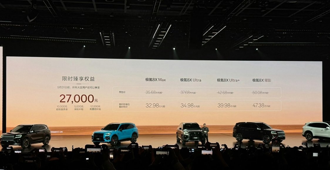 今晚极氪8X和长城魏牌V9X都公布价格了,8X主力区间33-40,V9X则是37