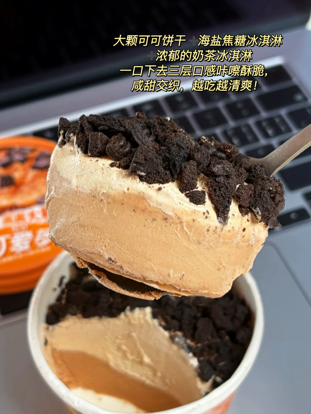 你想象一下班回家,躺在沙发上挖上一杯,真的有那么一刻瞬间被治愈了。