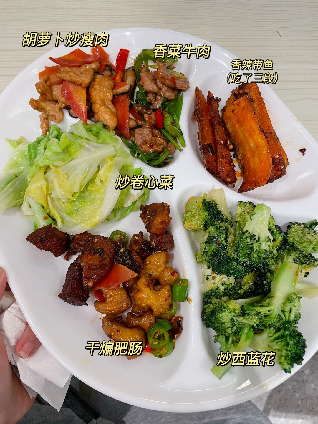 已经很努力地在午餐多吃蔬菜少吃肉了😅结果一算中午这顿热量还是挺高,主要肥肠我是真爱
