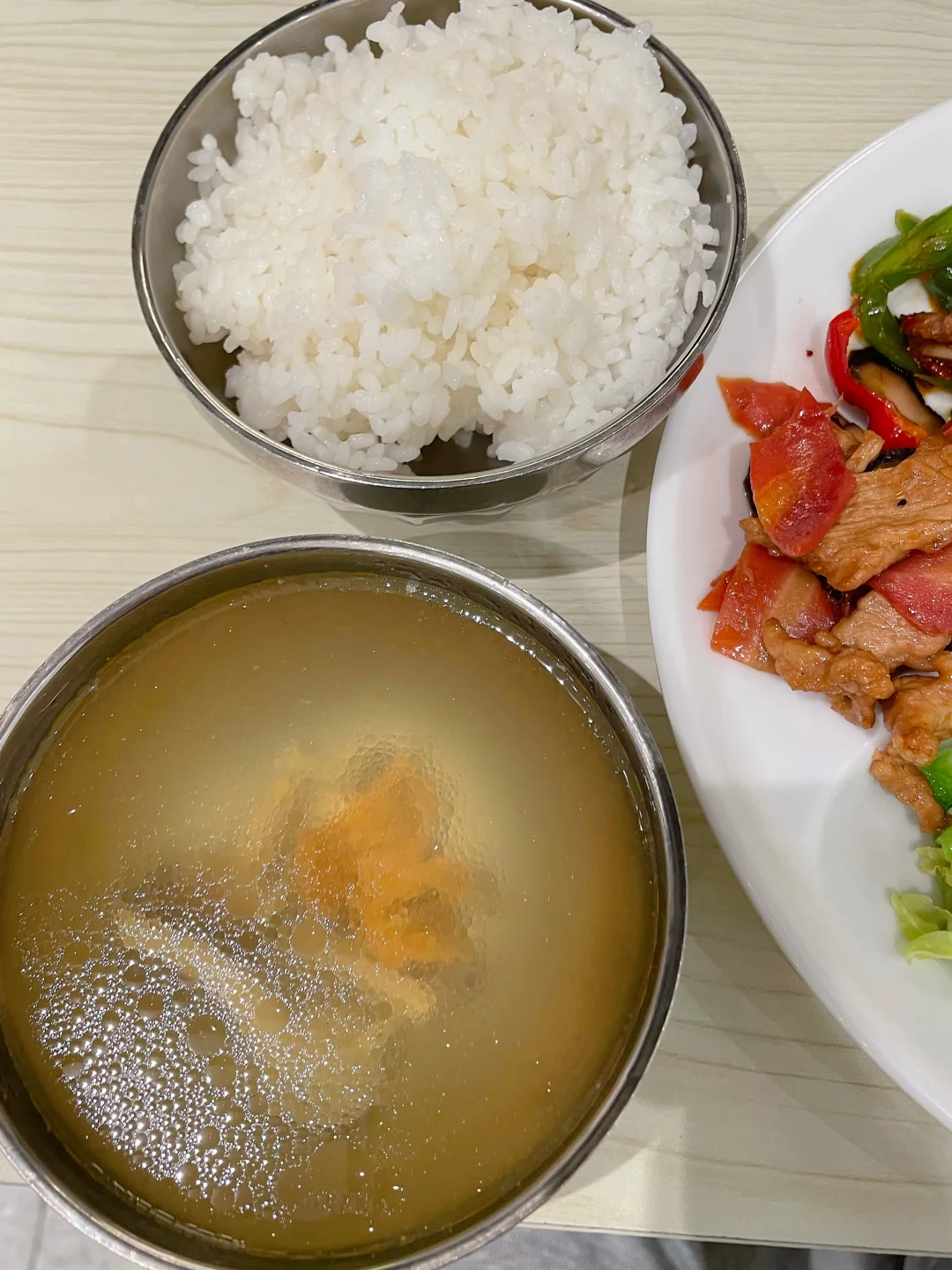 ✅ 午餐:米饭+汤+菜(12点)