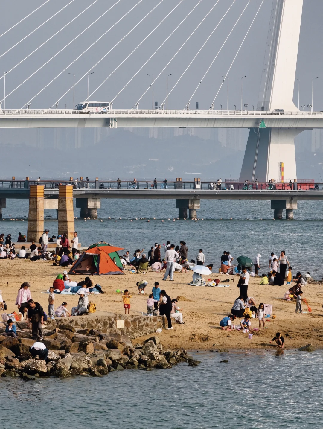 ✅有沙池、儿童设施、可赶海(注意安全)、扎帐篷露营