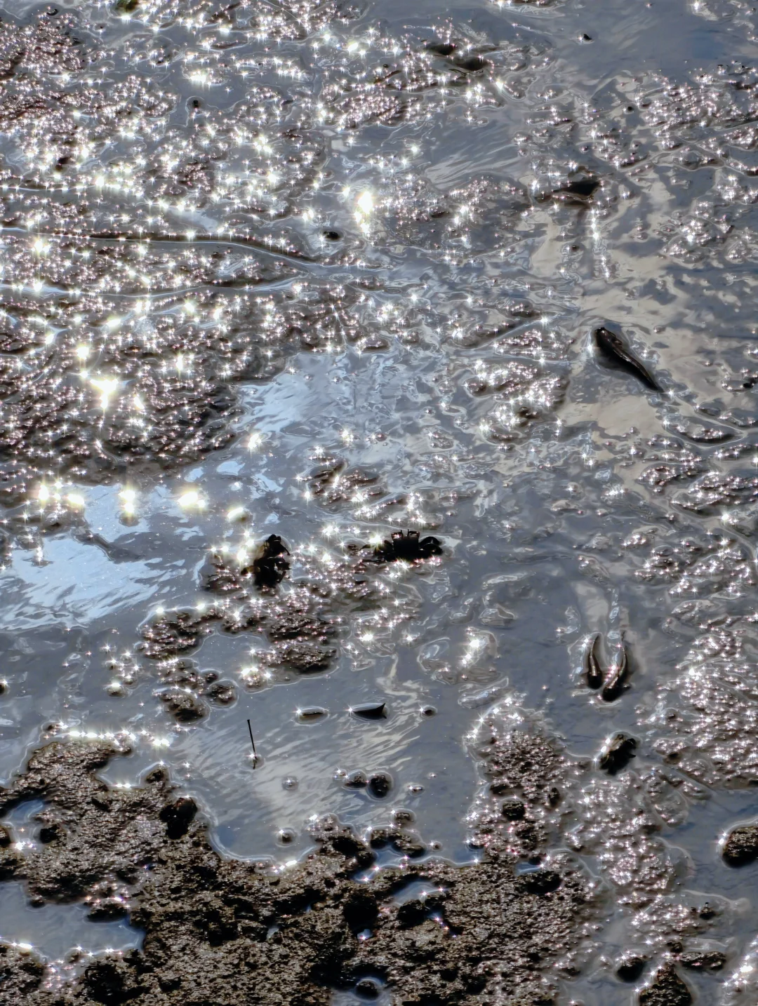 ✅退潮时滩涂裸露,可以看到不少弹涂鱼