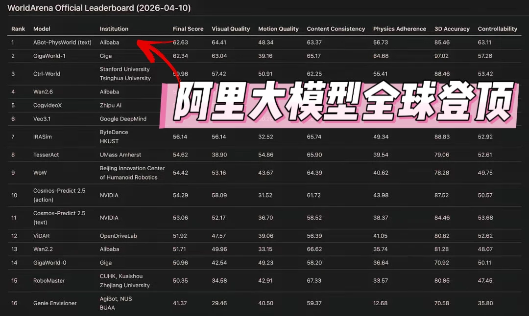 最近它在 Agibot World Challenge 和 World Arena 两大国际评测里双双登顶