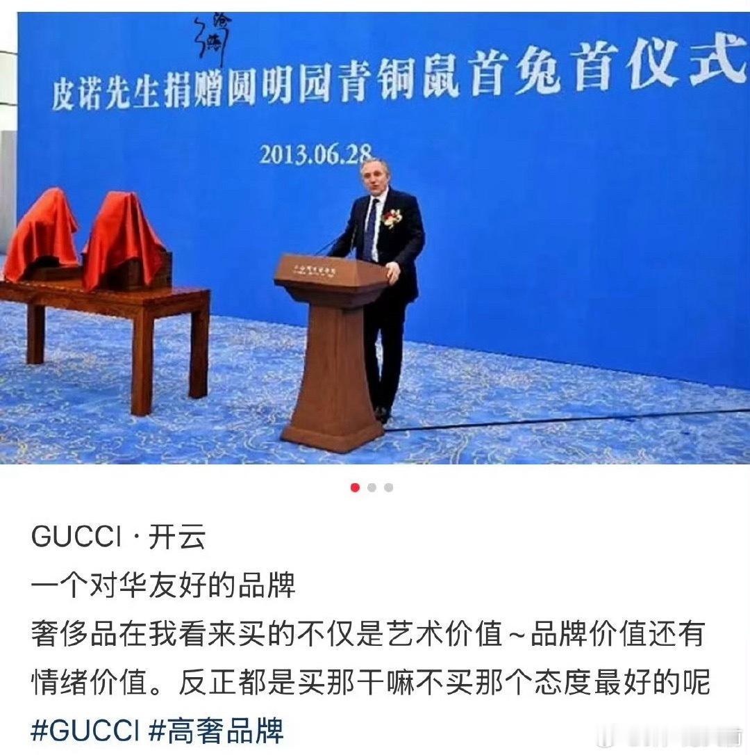 原来开云和Gucci一直对咱这么友好不仅自费买下圆明园两个兽首,无偿捐赠给咱们,还一直强调尊重咱的习俗庆祝中国春节,确实是顶奢里立场最正最亲中的品牌了