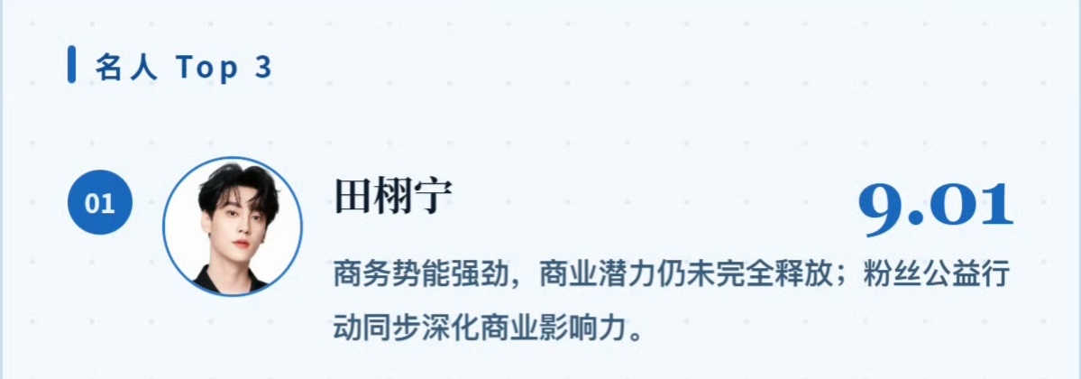 德塔文认证田栩宁商业价值 德塔文发布——田栩宁名人IP商业转化(商业变现+流量转化价值指数)周报第一商务势能强劲,商业潜力仍未完全释放;粉丝公益行动同步深化商业影响力!田栩宁名人IP商业转化周冠