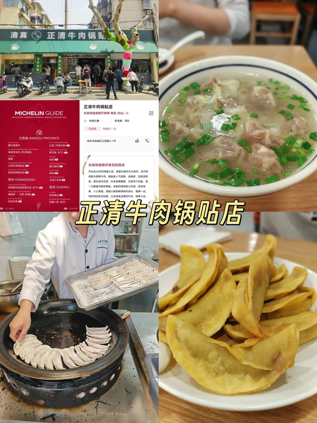 米其林必比登推荐老店,本地人私藏宝藏。金黄焦底的牛肉锅贴,外皮酥脆、内里多汁,牛肉馅鲜香微甜,搭配一碗热乎牛肉汤,完美结束一整天行程。