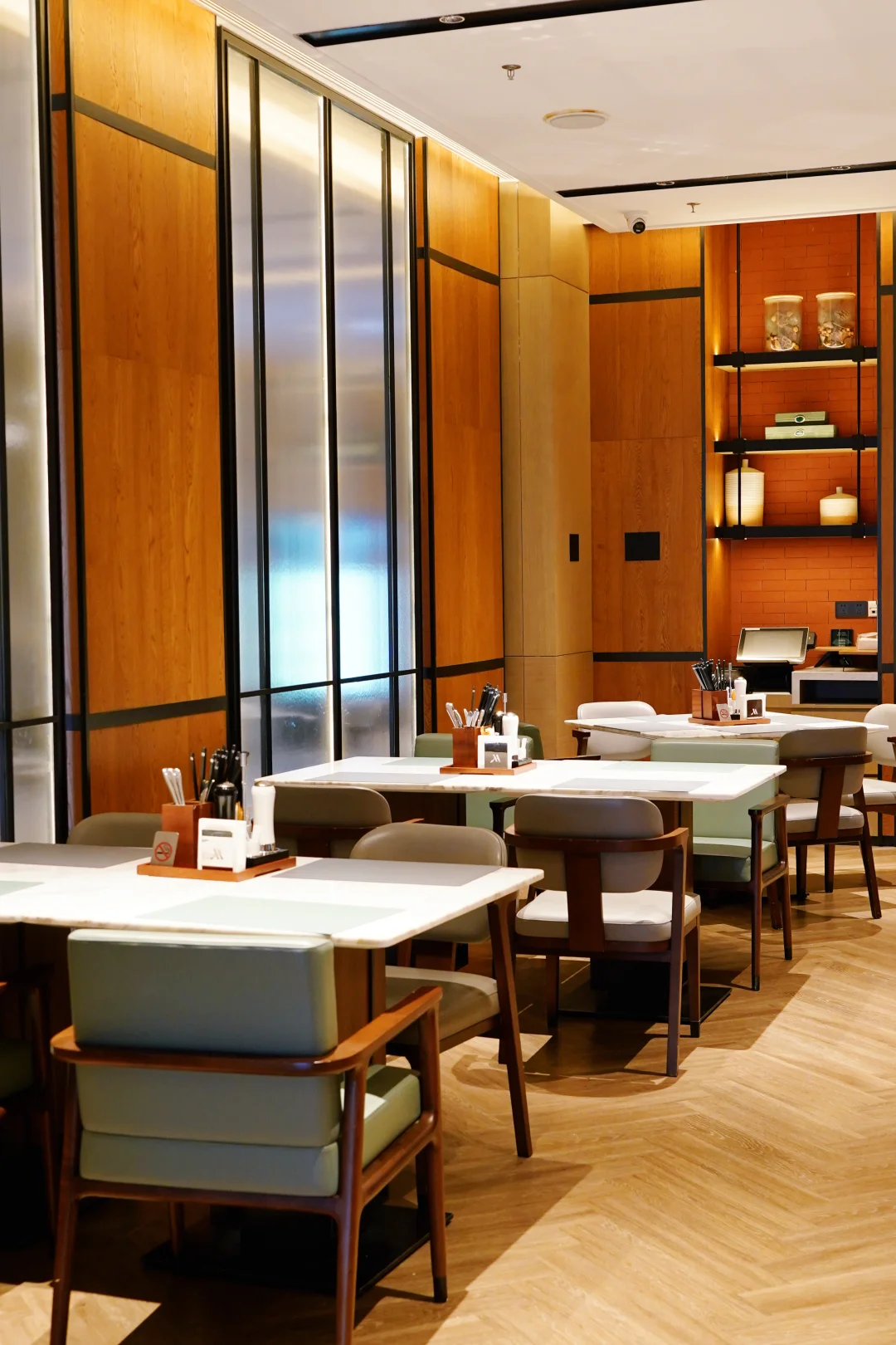 以天然木色、水墨壁画与雅致屏风