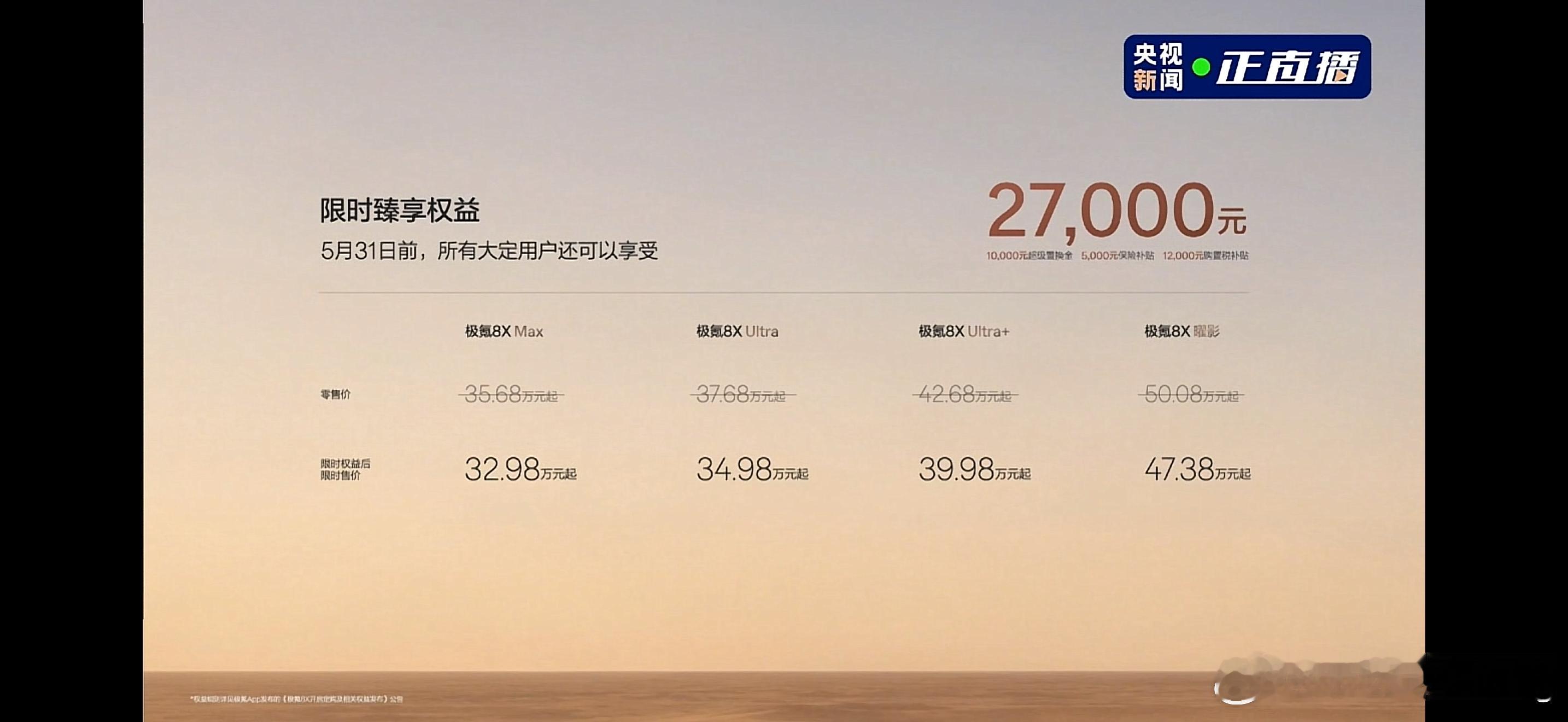 极氪8X上市限时售价32.98万元起从预售37.68万直接干到了32.98万起这