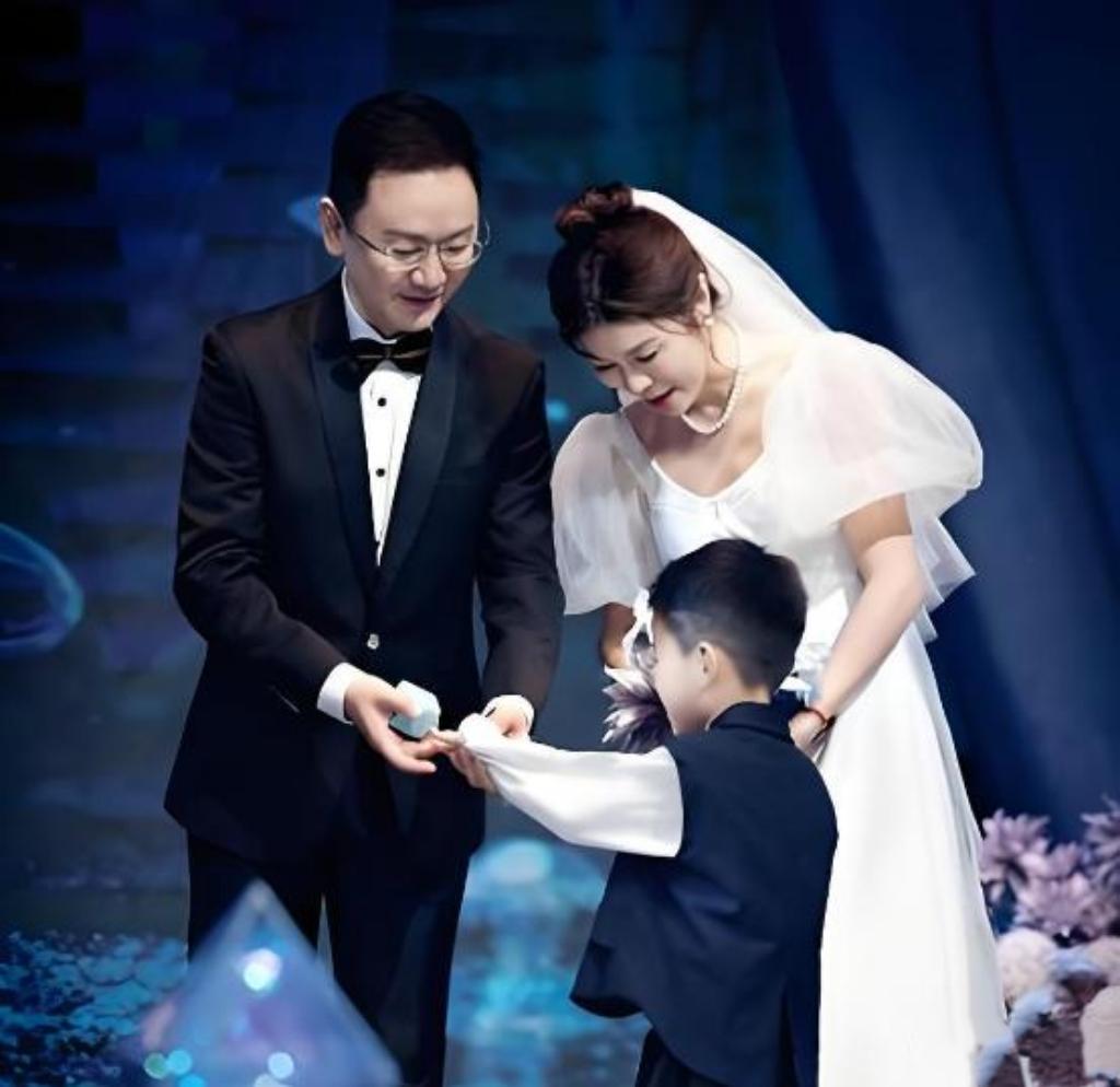 仪式进行到新郎准备致辞时,7岁儿子径直走上台,踮起脚尖拿过话筒,用稚嫩的声音大声说: