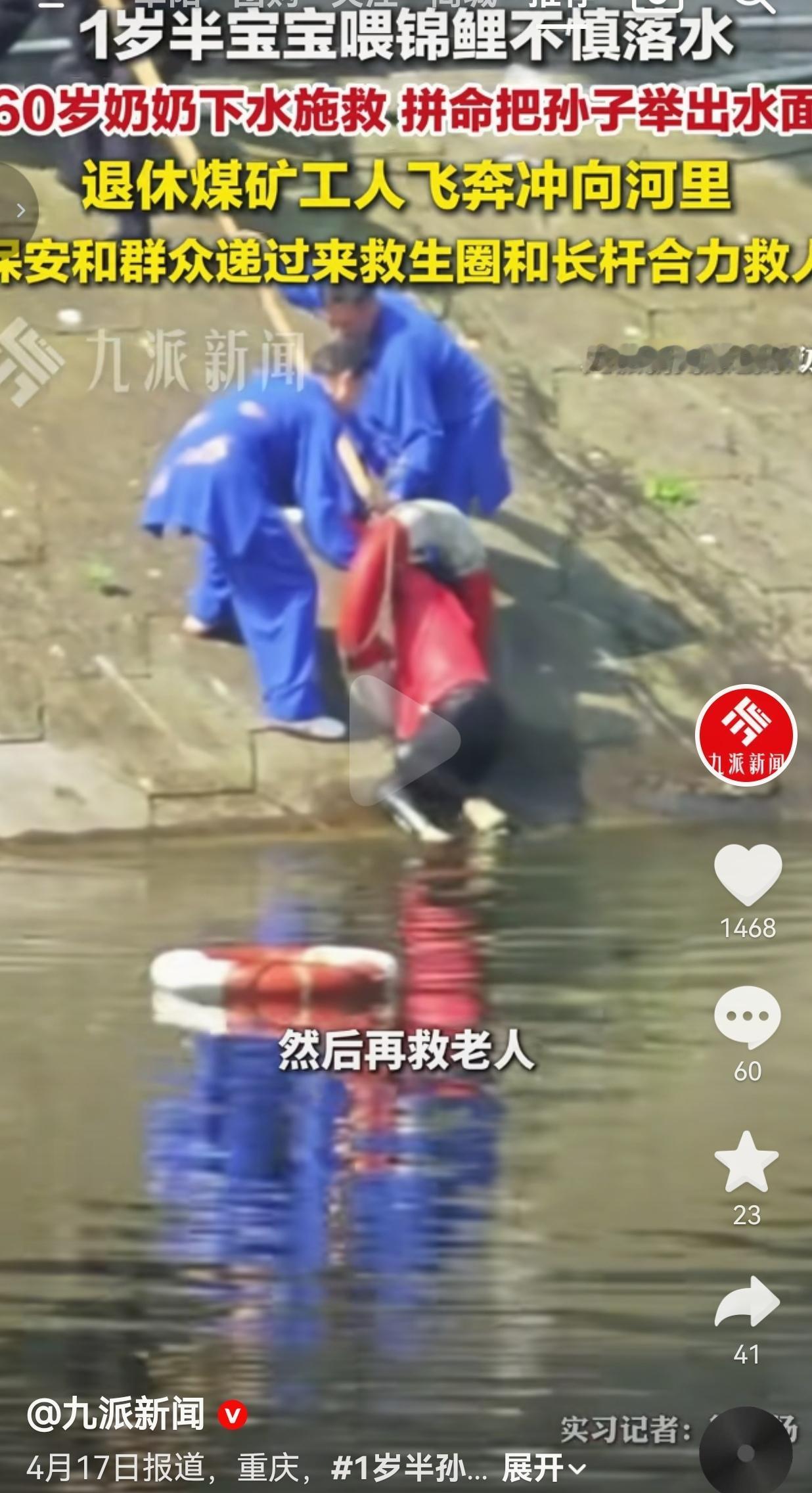 1岁半宝宝喂锦鲤不慎落水,60岁奶奶拼命托举,退休工人飞奔救人!全网都看哭了!