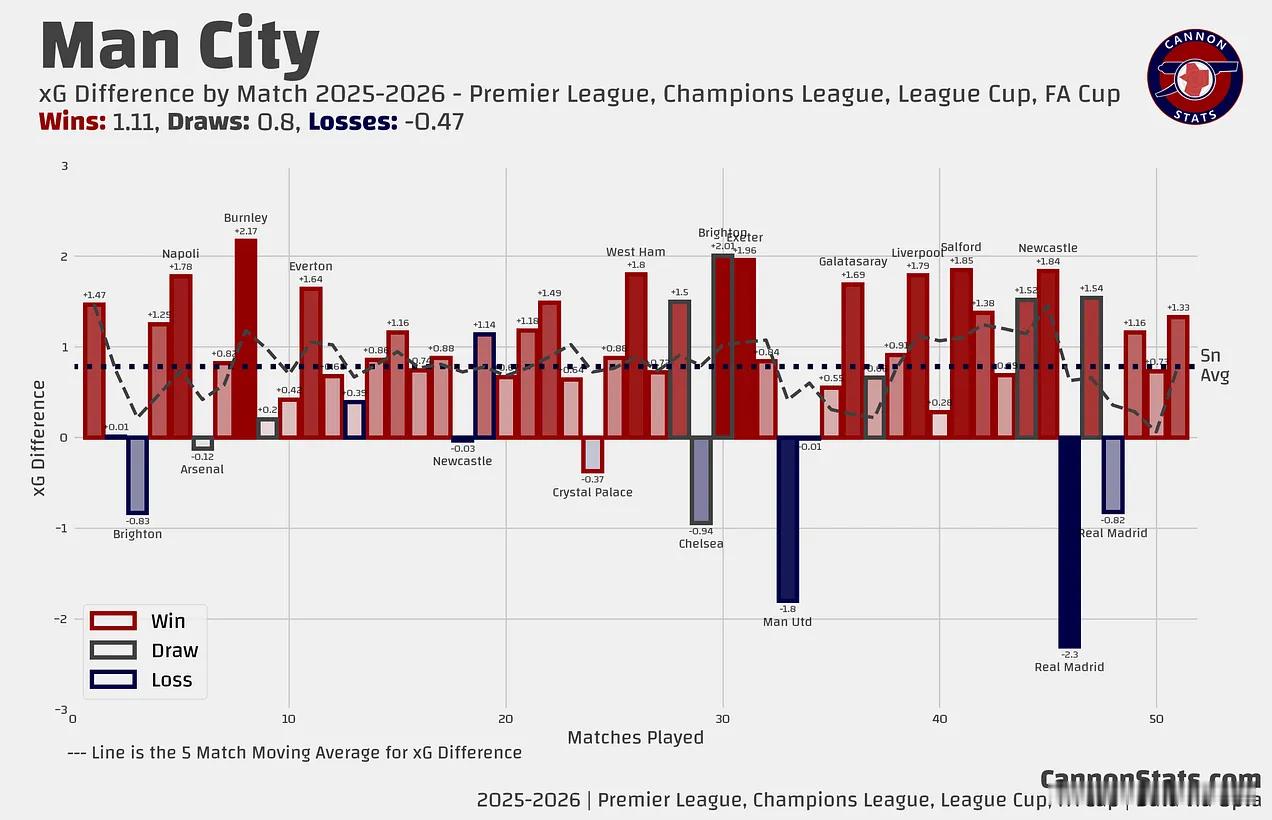 从逐场比赛来看,你可以看出他们是一支相当稳定的优秀球队,但他们无法像过去那样持续碾压对手,而且如果他们不在最佳状态,对手仍有能力利用这一点,他们也有一些非典型的完败。