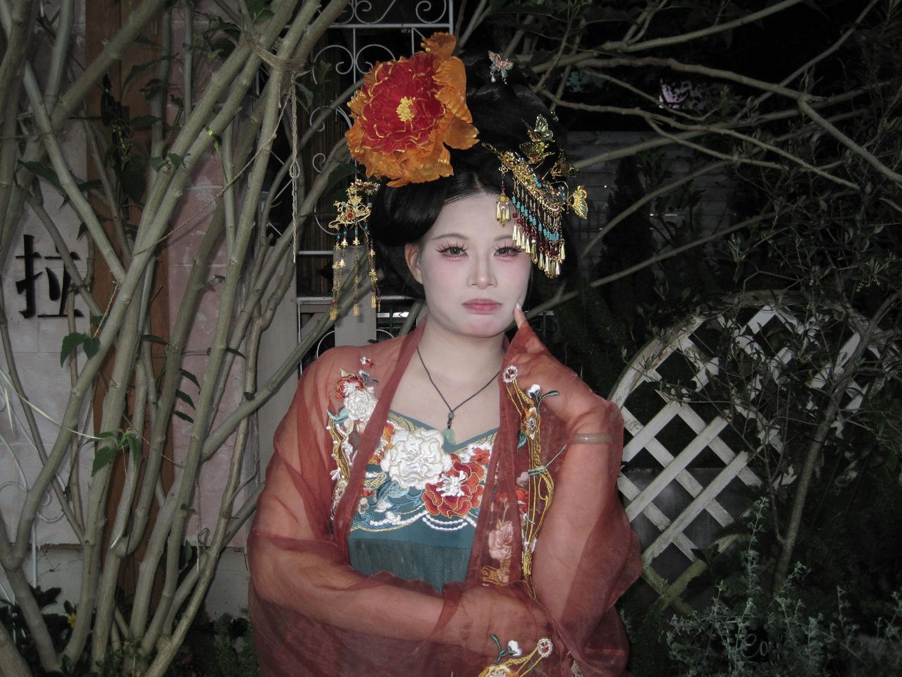 犹如从古代画卷中走出的仙子,清丽脱俗。她身着华美的汉服,精巧的绣花与流苏摇曳