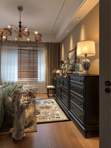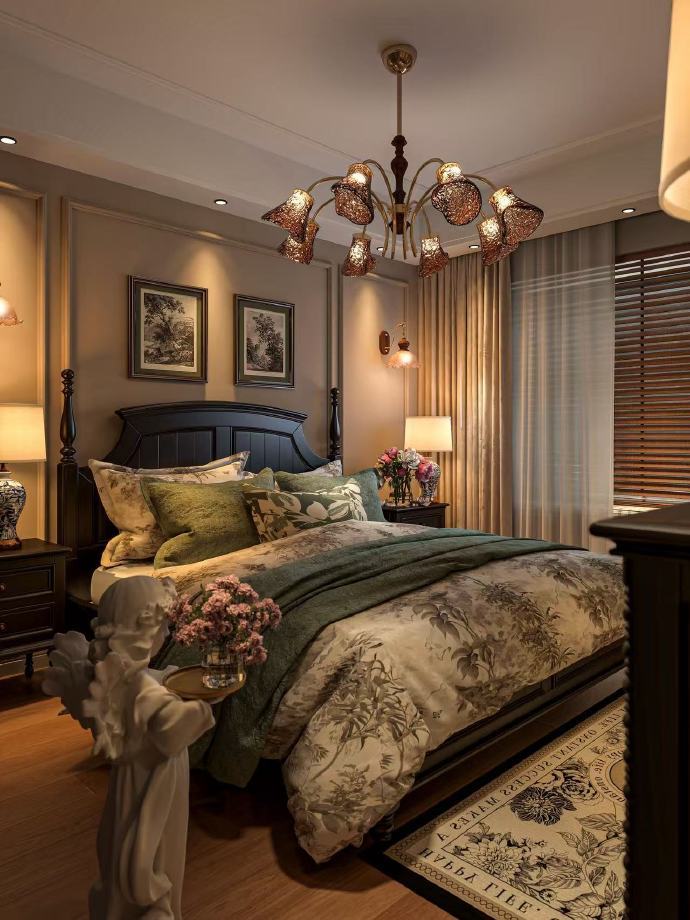 果然,复古美式卧室的氛围感还得靠软装!