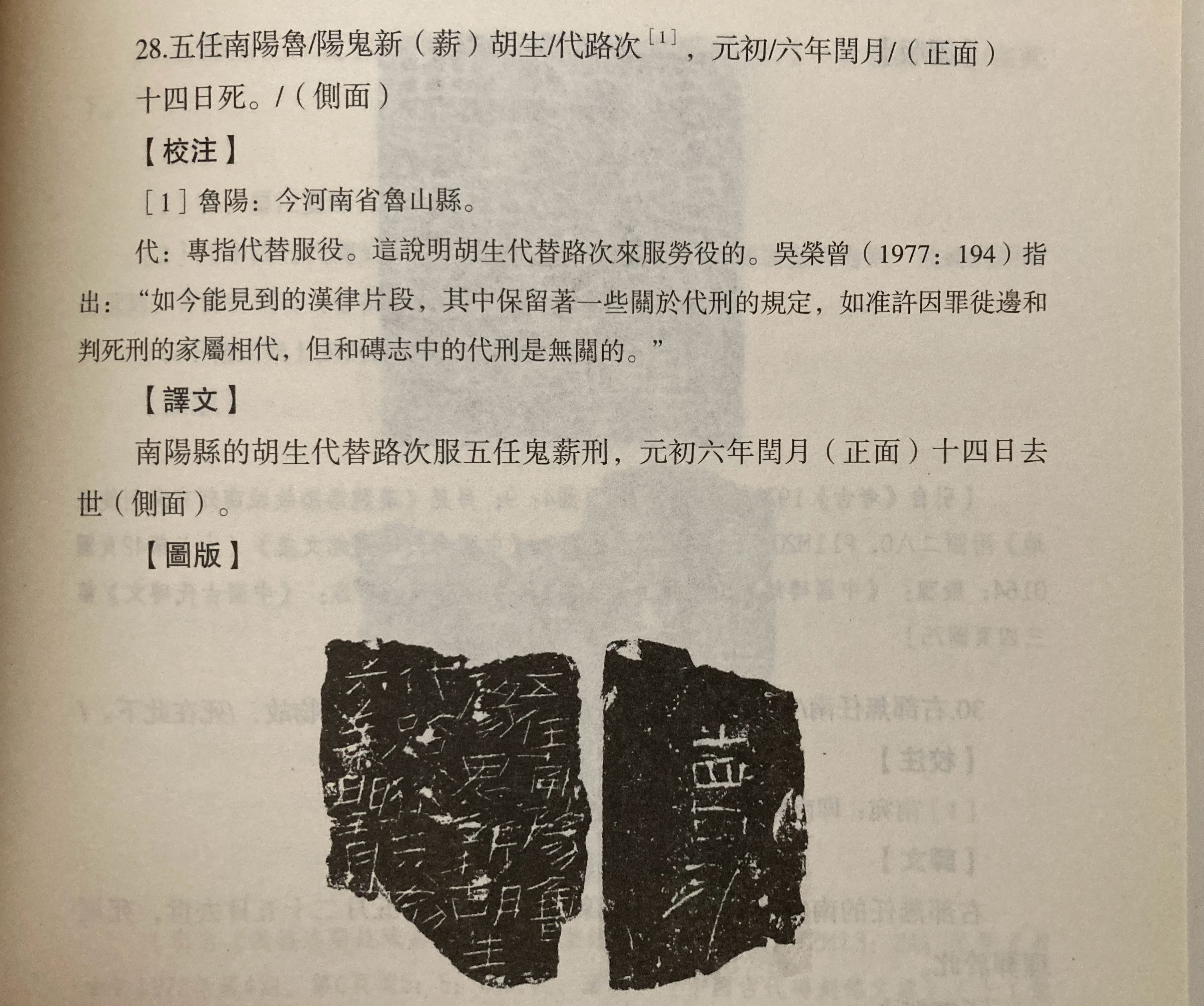 东汉刑徒墓砖提到了替人服刑的情况(图1,图2),这些代替他人服刑期间不幸身故的,