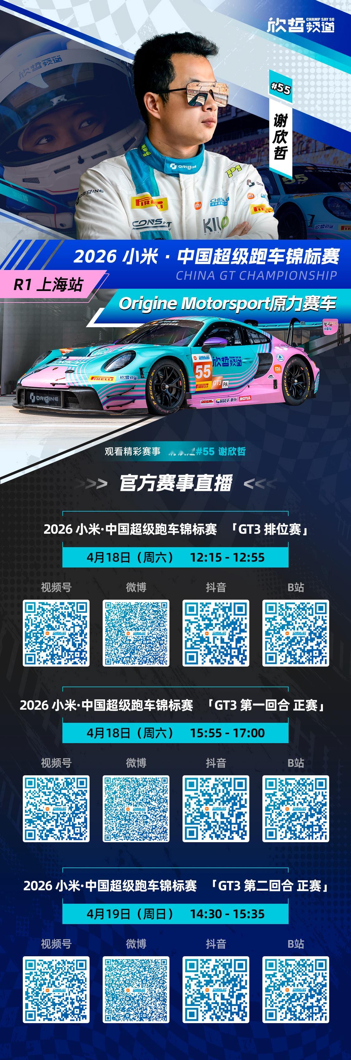 China GT 2026赛季揭幕战官方直播入口📺。第一次驾驶保时捷GT3R参赛,不到10个有效圈里要适应车辆特性找到调教,没开过新胎就直接排位,难度会比较大。会竭尽全力,请支持我们的55号赛车🏁!欣哲频道冠军之路 上海·上海国际赛车场