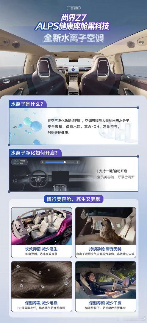 尚界Z7美容舱保湿实测尚界Z7诺贝尔奖材料MOFs上车我宣布,我的年度最佳购物就是这辆尚界Z7!最爱的就是它的座舱环境。夏天开车再也不会满脸油光了,因为空调吹出的水离子能带走黏腻,还能补水,皮肤状态肉眼可见地变好。而且新车提回来几乎没有异味,销售说用了能化学降解甲醛的MOFs材料,特别安心。现在朋友坐我车都夸里面又舒服又清新。这种从细节关怀用户的科技,才是真正的高端。