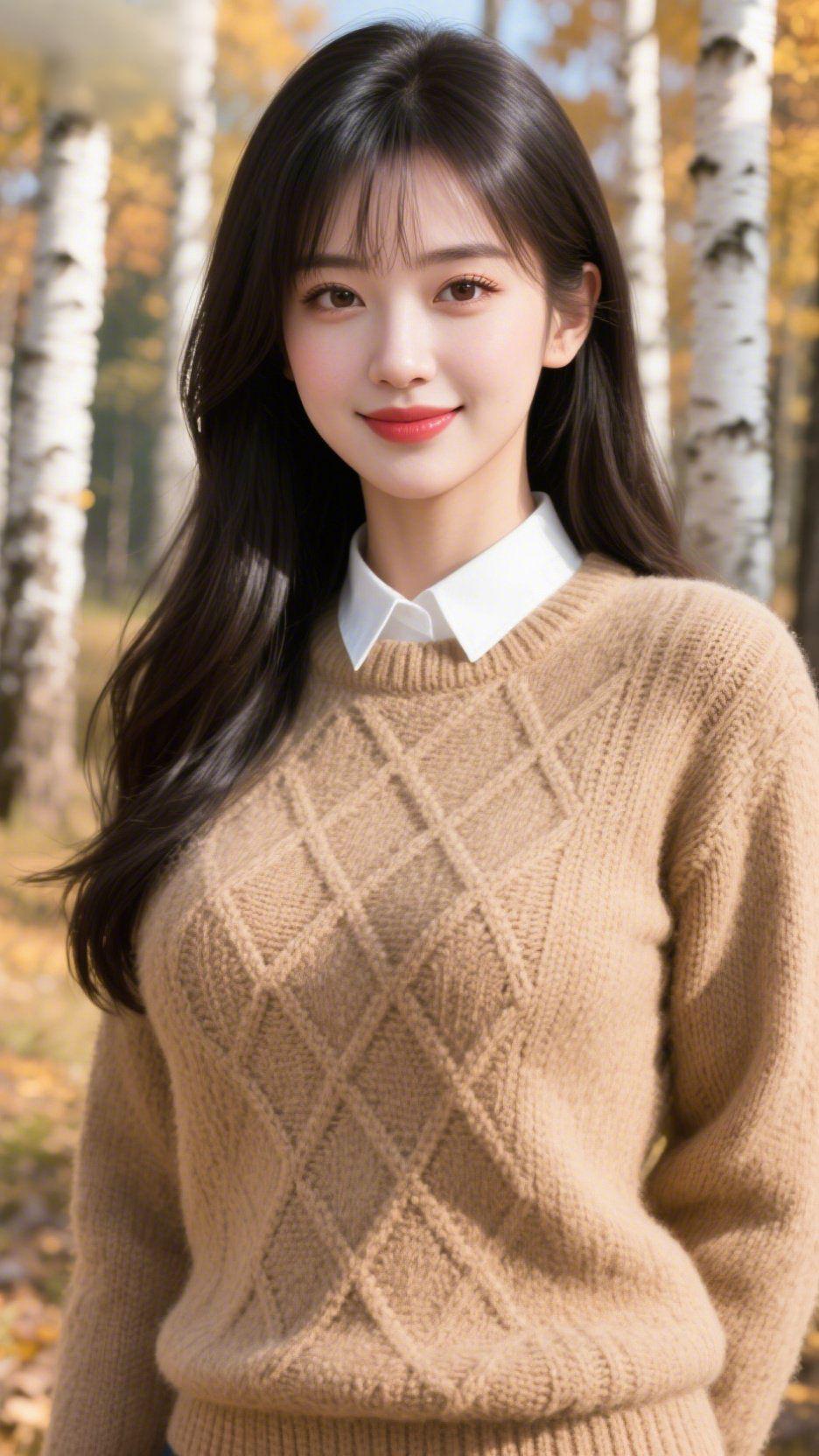 洁白挺拔的树干亭亭而立,斑驳纹理勾勒出自然的肌理,枝头缀满鎏金般的秋叶,在清风中悠然舒展。暖阳穿透林隙,洒落满地明亮光斑,金黄落叶层层叠叠,铺就一方厚实秋毯。