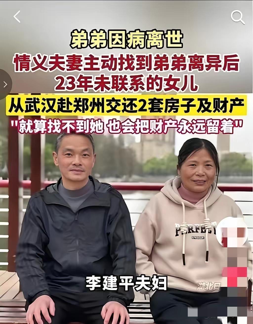 李建平夫妇后来接受采访时说,他们从来没想过靠这事出名,也没想过博什么好处。他们只是觉得,做人得对得起良心,对得起死去的弟弟。弟弟的孩子,就是他们的亲人,亲人的东西,就得还给亲人。哪怕过程再麻烦、再辛苦,只要东西交到侄女手里,就什么都值了。