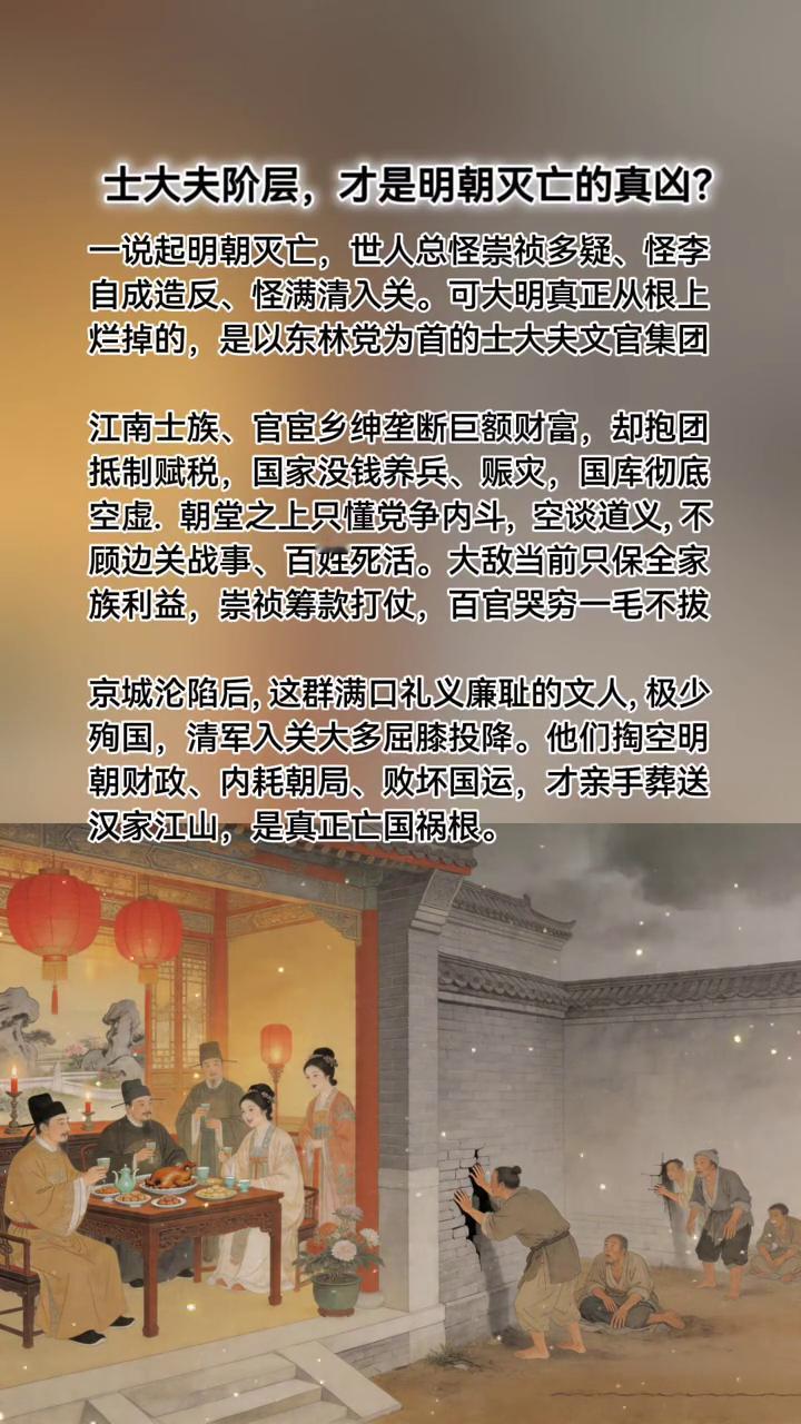 京城沦陷后,这群满口礼义廉耻的文人极少殉国,清军入关大多屈膝投降。他们掏空明朝财政、内耗朝局、败坏国运,才亲手葬送汉家江山,是真正亡国祸根。