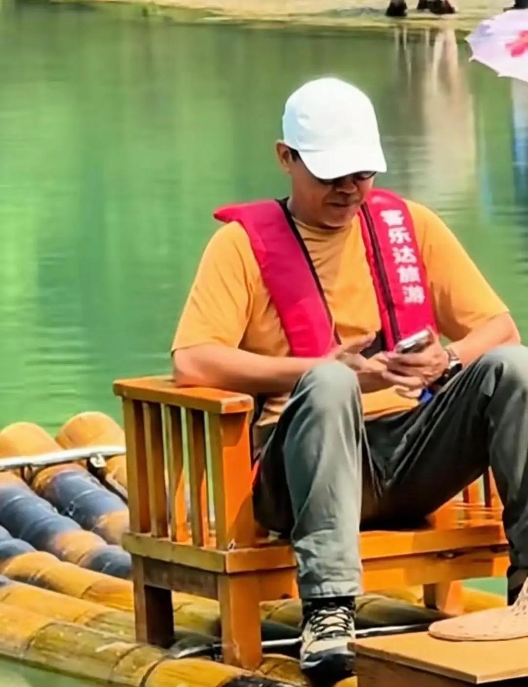 刘青云和老婆郭蔼明现身贵州旅游,夫妻俩穿衣打扮朴素低调,坐竹排游湖欣赏风景,完全