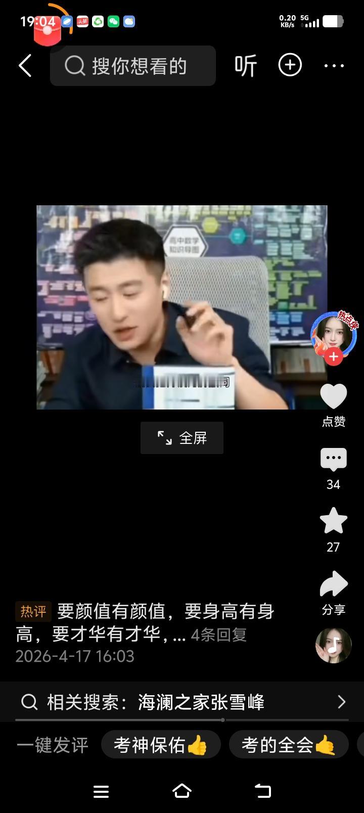 张老师一再说,你们这样说,难道我就是靠颜值吃饭吗?我的才华我的才华没用了!