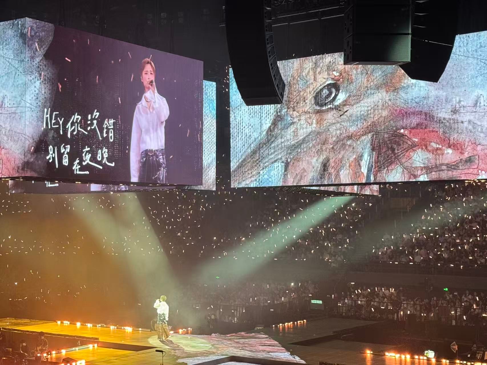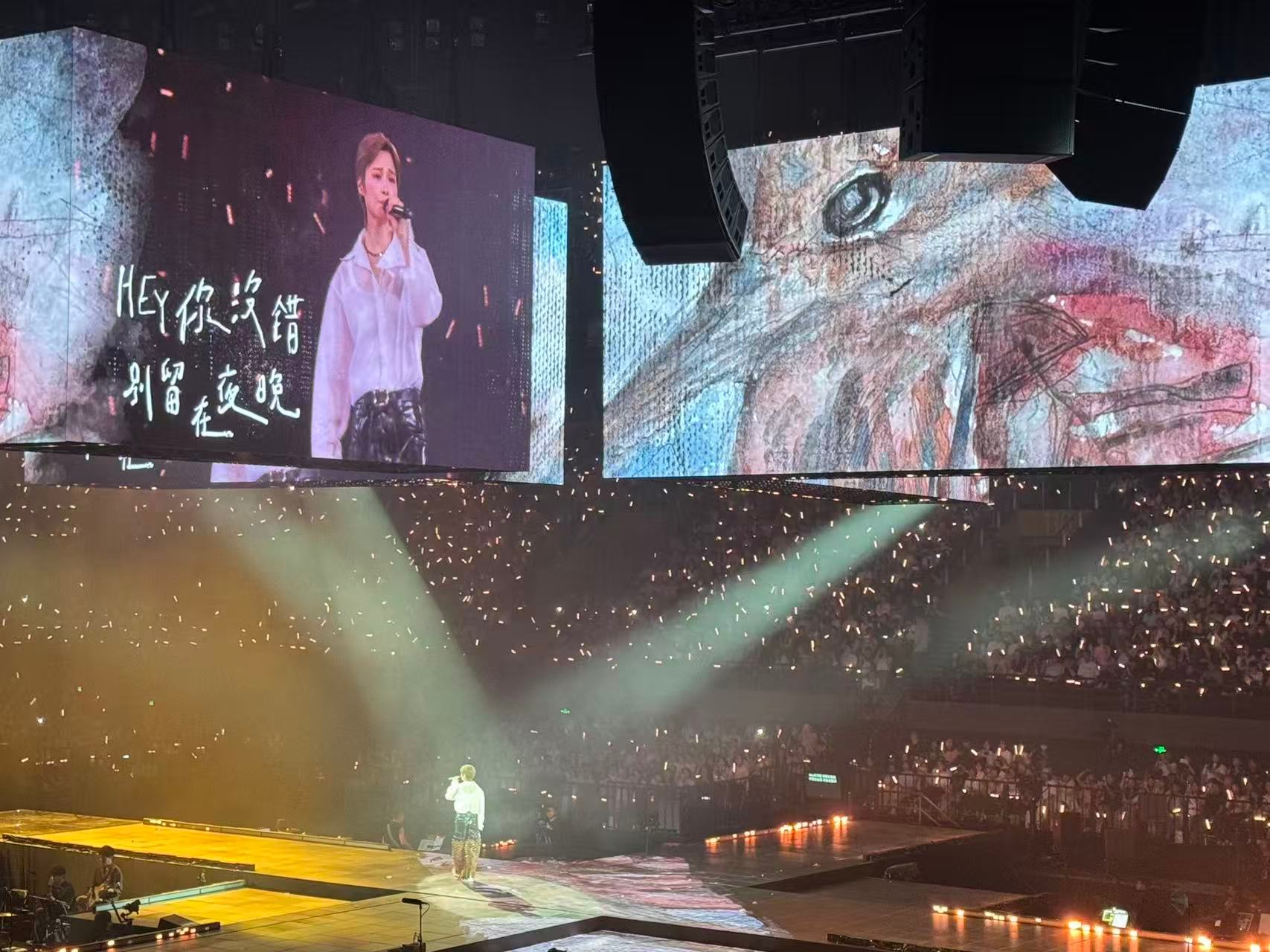 李宇春演唱会背景是张子枫的画 《Hey你没错》这首歌本身就很有力量,李宇春把它唱出了电影里那种不服输的劲儿。再加上张子枫的画作投影,一个用声音一个用画面,把角色的坚韧感撑满了。