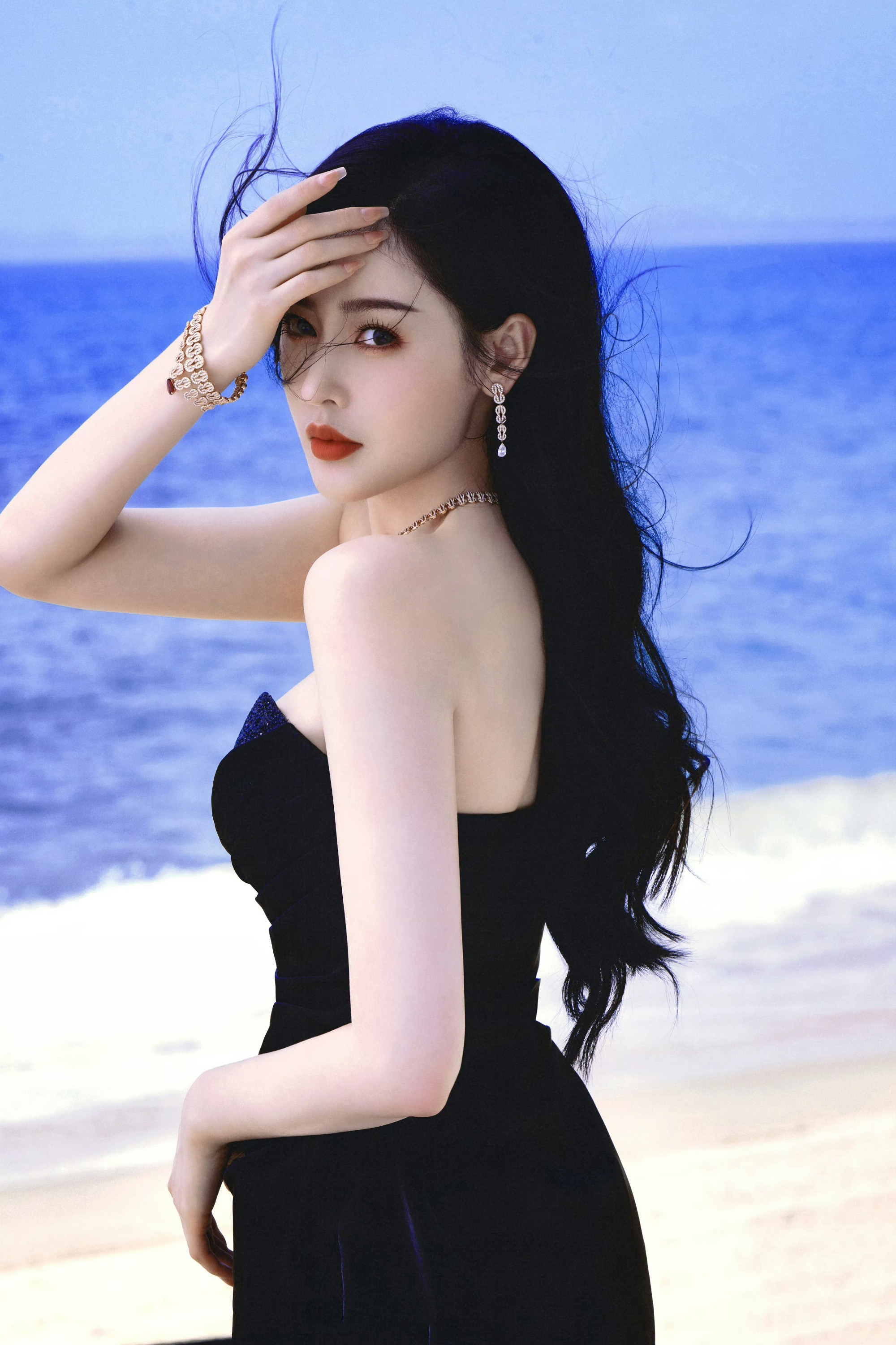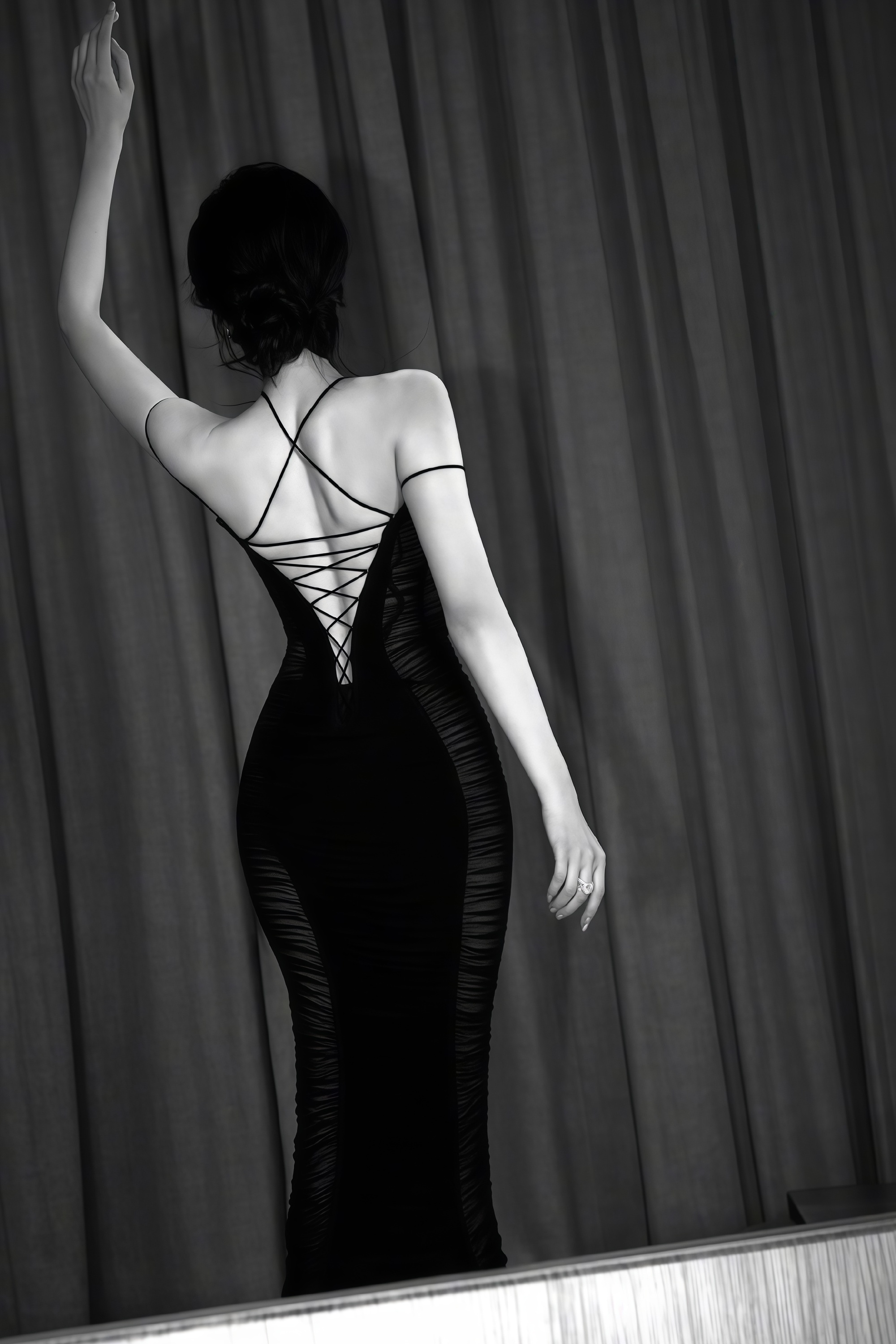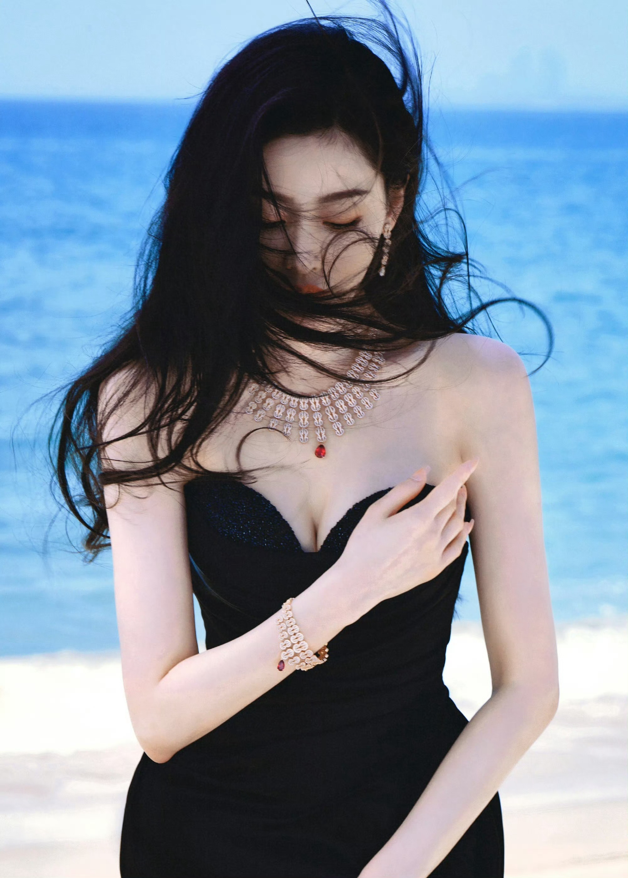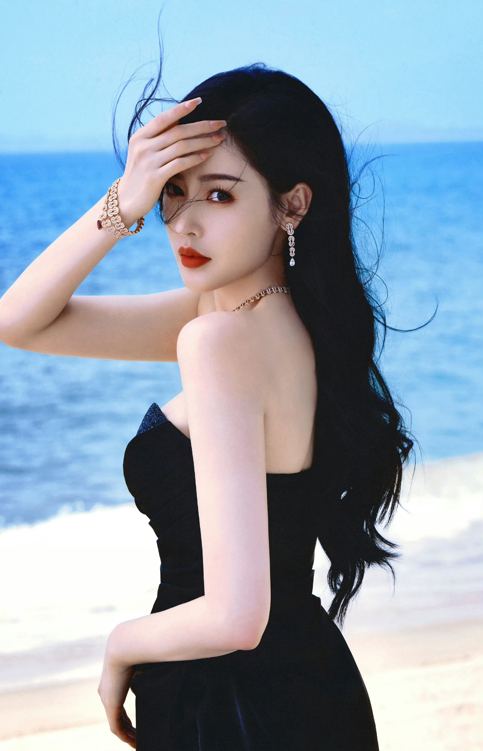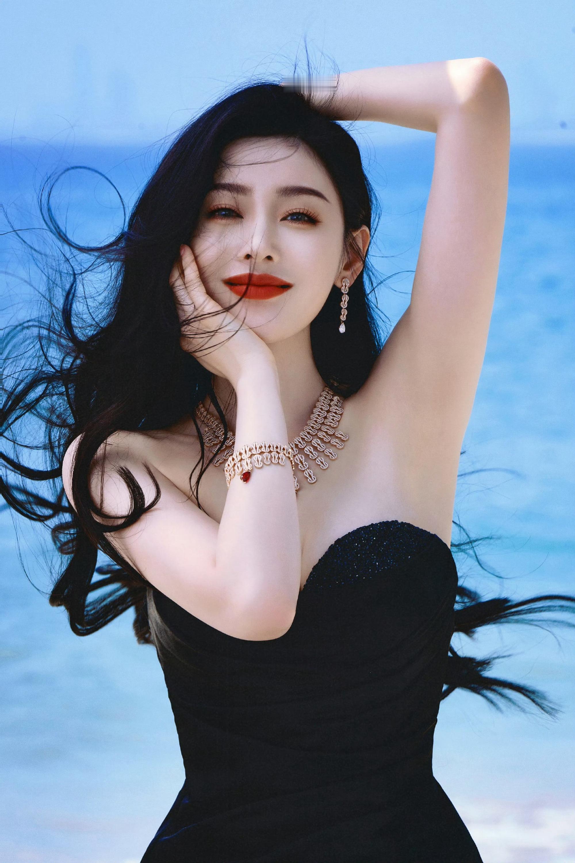 张天爱,一组黑裙穿搭,好身材。张天爱