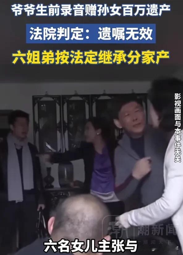 “金钱面前,亲情一文不值!”福建,男子在父亲生病期间独自尽孝,于是,父亲想把109万遗产都留给他,为了防止别人争,特意留下遗嘱,把遗产赠与孙女。谁知,父亲去世后,男子的6姐妹找上门来,要求和男子平均分割109万,男子不干了,认为父亲已经留下遗嘱,她们没权利争。被拒后,6姐妹直接将男子告上法庭。法院竟认定遗嘱无效,分配结果很意外。