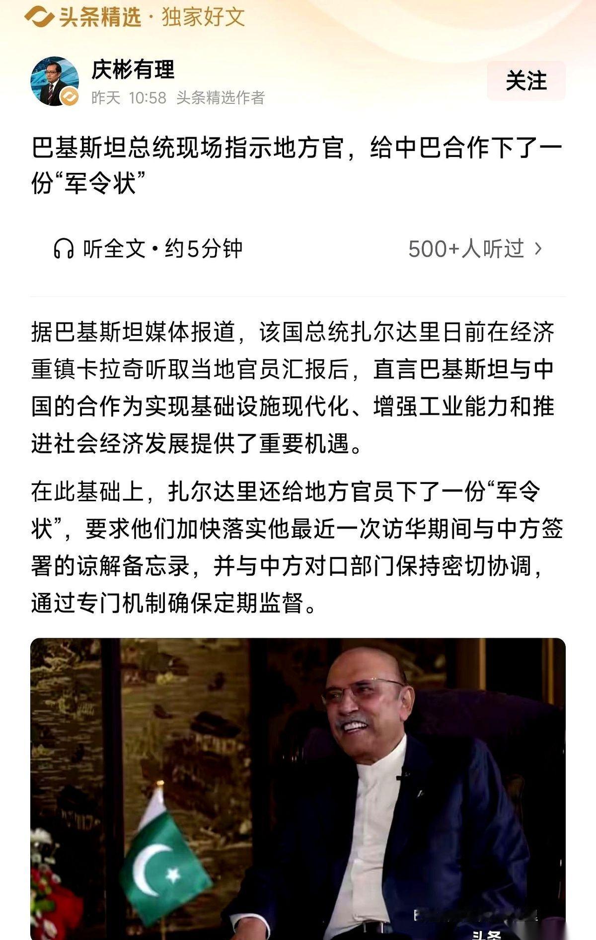 扎尔达里在卡拉奇露面时,态度硬得像块铁。这位巴基斯坦总统对着台下的一众官员,当场立下了“军令状”:去年签下的那些合作协议,谁要是再敢拖进度,谁就得负责。