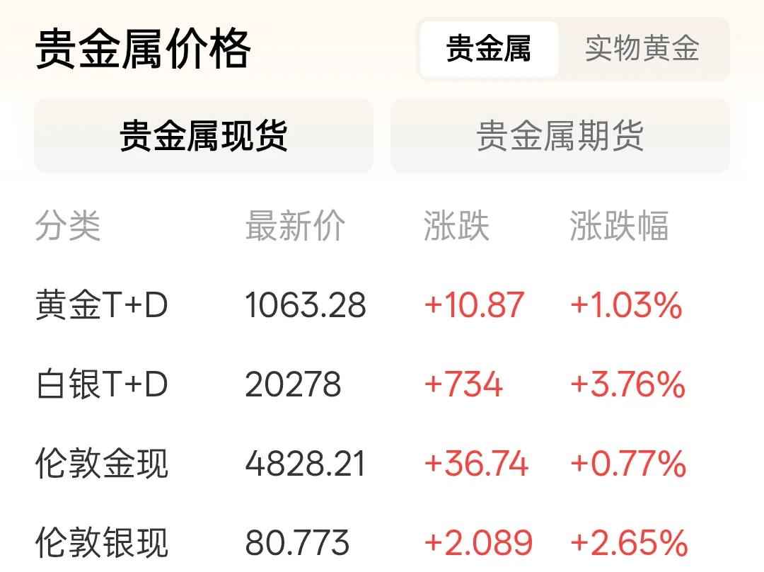 今天黄金的最新价格!