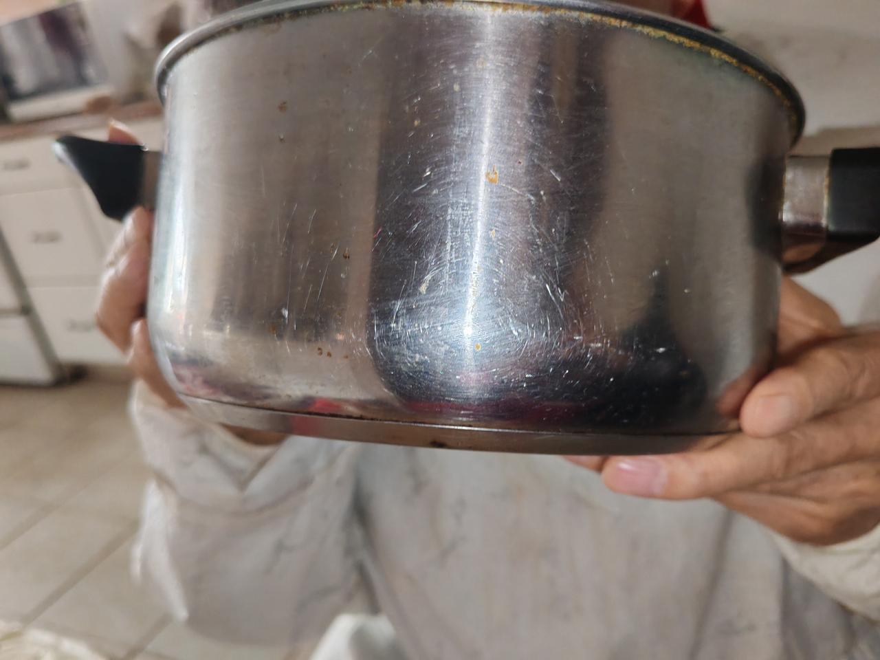 我一看这是两顿的,已经剩不多了,我怕他喝太多,喝撑了!所以我阻止他不让他喝了,如果不阻拦他,他能把一锅全喝了!
