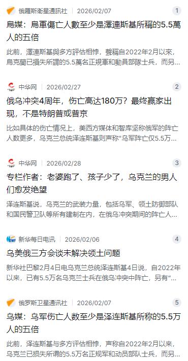 2026年2月,乌克兰总统泽连斯基在巴黎接受法国电视2台采访时,首次公开承认了一个让乌克兰社会难以平静的数字——自2022年俄乌冲突全面爆发以来,乌军官方确认的阵亡人数已达5.5万人,此外还有“大量人员”被认定为失踪。这个数字一出来,外界普遍觉得报得太低了,因为美国战略与国际问题研究中心(CSIS)在2026年1月底发布的报告里给出了完全不同的估算。CSIS指出,截至2025年12月底,乌克兰军队的总伤亡人数应该在50万到60万之间,其中阵亡人数保守估计也有10万到14万人。这两种数据虽然口径不一,但无论如何,乌克兰的年轻男性人口在过去四年里遭受的损失,已经远远超出了和平时期任何人的想象。