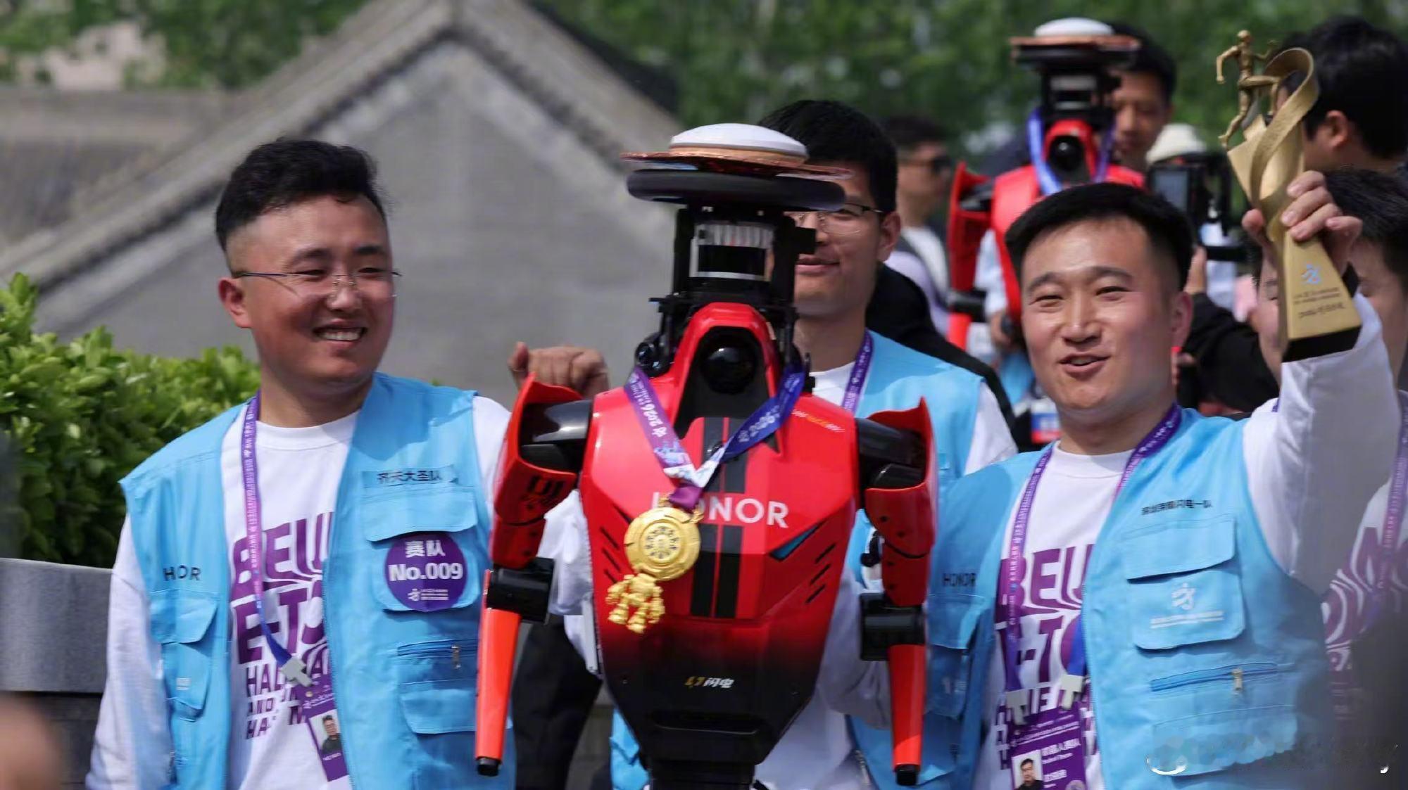 荣耀机器人包揽马拉松金银铜2026机器人半马,齐天大圣队、雷霆闪电队、星火燎原队,直接把金银铜牌全包圆了!净用时:50分26秒、50分56秒、53分01秒——关键这三支队伍用的全是自主导航机器人,没遥控没外挂,纯靠自己跑!