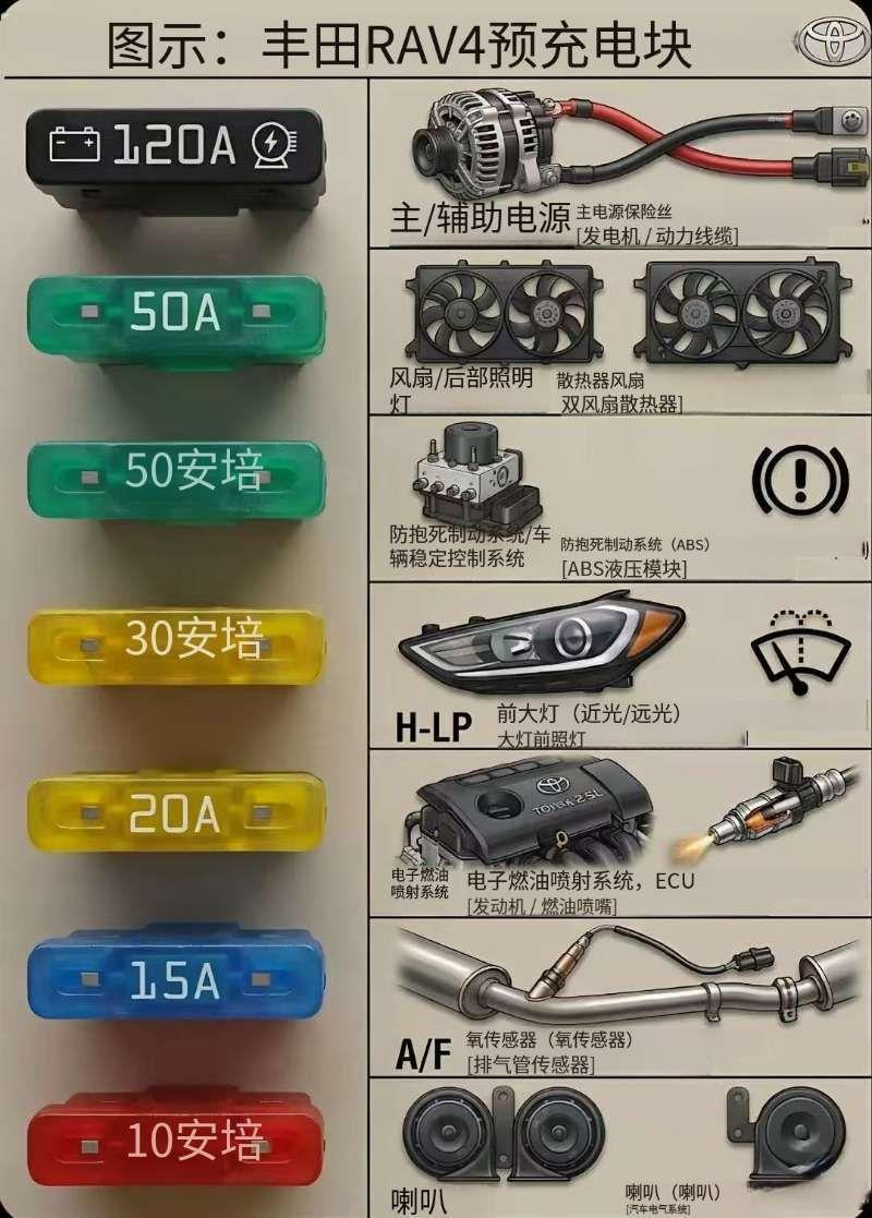 今天给所有开丰田RAV4的朋友,整理了发动机舱里最关键的几个保险丝,看完再也不怕被修理厂坑!