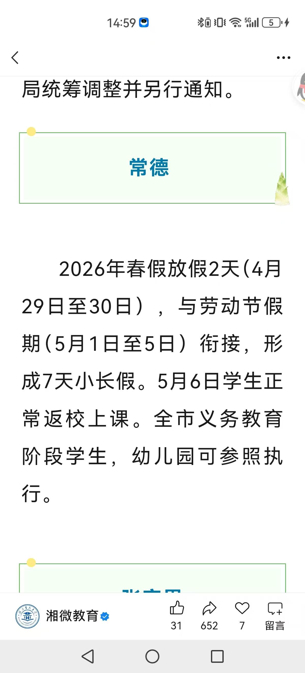 往年,清明只有3天假,今年有些学生休了5天假。往年五一只有五天假,今年很多地方可以连休7天假。学生们欢呼雀跃。