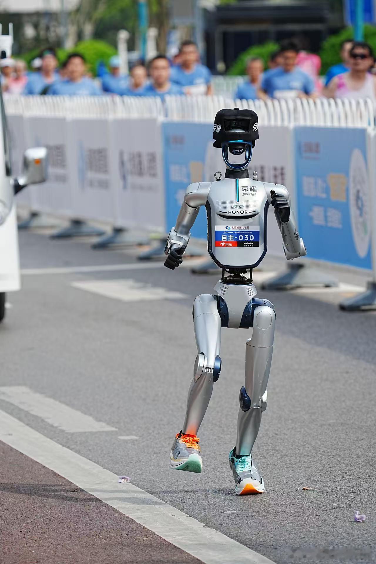 荣耀机器人打破人类半马纪录 今早的北京亦庄,见证了历史。 荣耀自研人形机器人“闪电”首次参加半程马拉松,就以48分19秒的净成绩夺冠。这个数字有多震撼?人类男子半马世界纪录是57分20秒——闪电快了将近9分钟。 更惊人的是,荣耀机器人包揽了赛事1-6名。从立项到夺冠,研发时间之短、突破之大,远超外界预期。⭐在未来更多的体育赛场上,人机协作也会有更多的新可能:1.也许三年后的马拉松赛道上,会有这样的场景:人形机器人作为“破风手”为人类选手精准配速,实时分析风速、坡度、体能状态,动态调整领跑节奏。人类选手要做的,就是相信自己的双腿,跟随那个永不疲惫的身影,去触碰自己的极限。2.训练领域的变化会更早到来。机器人陪练可以24小时不间断模拟各种战术:变速跑、弯道超越、冲刺对抗。它能记住你每一次呼吸节奏的紊乱、每一步落地角度的偏差,用数据帮你找到最经济的发力方式。3.对于专业队来说,这意味着伤病风险的降低和训练效率的提升。对于普通跑者,未来或许可以租一个机器人私教,在小区楼下就能接受世界级的指导。 而人类的价值,在于不可替代的部分:跑得再快,闪电也不会在冲线后拥抱教练。跳得再高,机器人也不会为了一个动作重复失败一千次后喜极而泣。 体育最动人的部分,从来不是数字本身,而是数字背后那个血肉之躯的挣扎与超越。机器人可以成为一面镜子,照出人类极限的边界,然后激励我们一次次去突破那个边界。 这才是人机竞速的真正意义——不是谁打败谁,而是一起把“可能”的边界推向更远。 大家怎么看人形机器人参与体育竞技?欢迎在评论区聊聊你的看法~