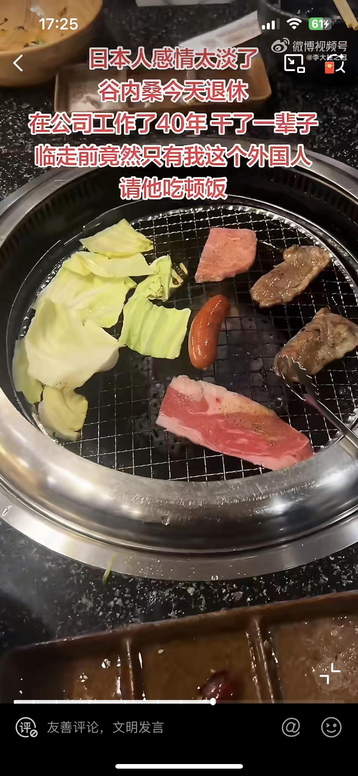 一个工作 40 年的日本人退休,只有一个中国小伙请他吃饭,让这个日本人非常的意外和激动。他们工作的应该是一个机械加工的企业,中国小伙在这个企业上了 4 年班,那个日本同事工作中对他多有照顾,是一个非常好相处的人。他最后一天上班结束,公司和同事都没有任何要欢送的表示,更不要说开欢送会,吃饭喝酒庆祝这些仪式了。就这样落寞的离开,中国小伙因为感恩于他的帮助,主动提出请他吃个饭。小伙来日本几年,就感觉与日本人相处平时客客气气,但内心都是相当的冷漠,把人走茶凉诠释的淋漓尽致。