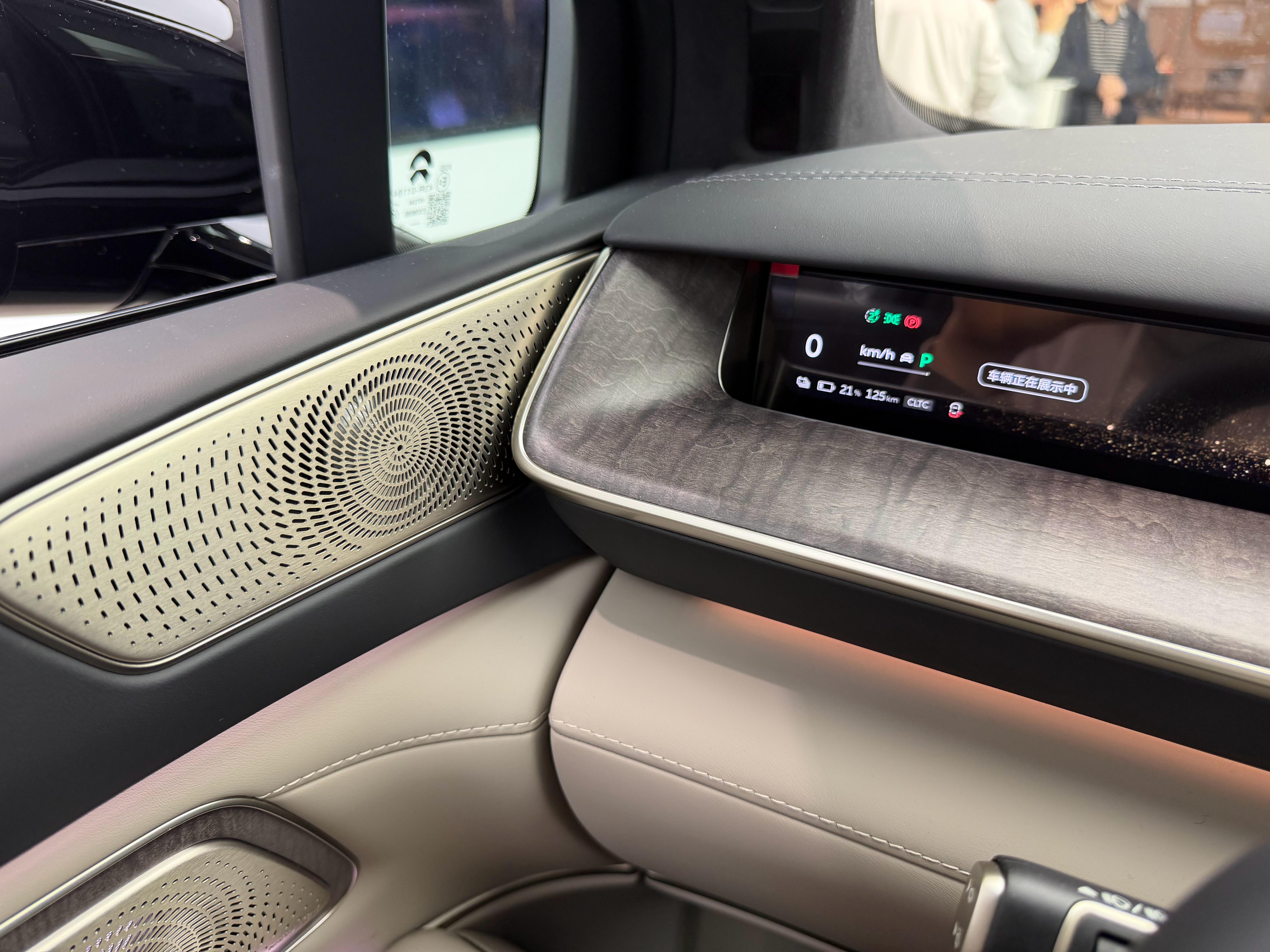今天又忍不住去看了ES9设计、做工,用料,豪华感拉满了ES9真是设计的巅峰,科技豪华,不像纯粹的科技旗舰,冷冰冰的只有数码屏幕。es9把细节如缝线,隐藏式灯光源,环抱布局包围感拉满了,在司机位,安全感十足,也不知道这个感觉来自于什么细节设计,舱内用了皮质,缝线,木纹,玻璃(屏幕)通过色彩,材质,纹理拼接,就恰到好处,真的很喜欢es9舱内设计。很喜欢大饼轮,这个尺寸,只有大饼轮才能hold住。