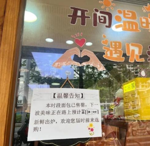 面包供不应求到什么程度?店里每天分4个时段上架,第一批早上7:58就卖光了。店门口的“售罄”牌子早早挂出来,可还是有人站在那儿等着,不甘心地往里张望。
