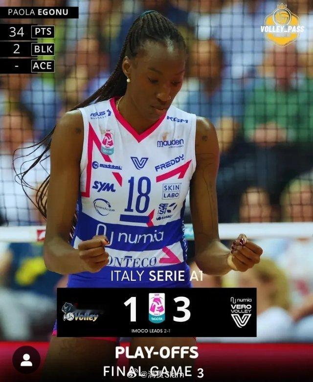 女排 米兰3-1科内,比赛继续艾格努荣膺本场mvp