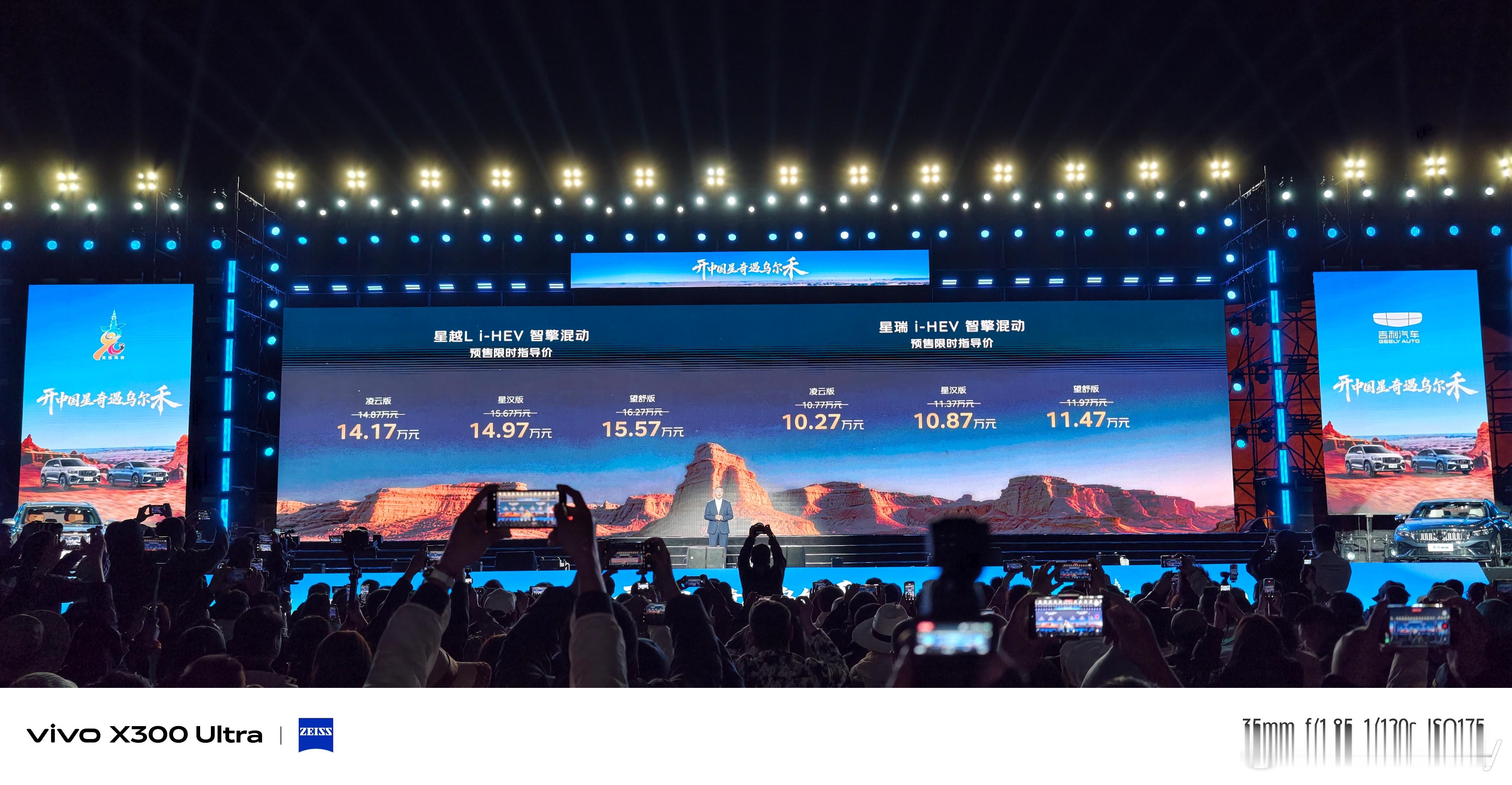 吉利中国星i-HEV智擎混动双车正式预售啦!4月19号在新疆克拉玛依乌尔禾,星瑞和星越L两款智擎混动版同步开启预售,价格嘛,星瑞10.27-11.47万,星越L 14.17-15.57万。