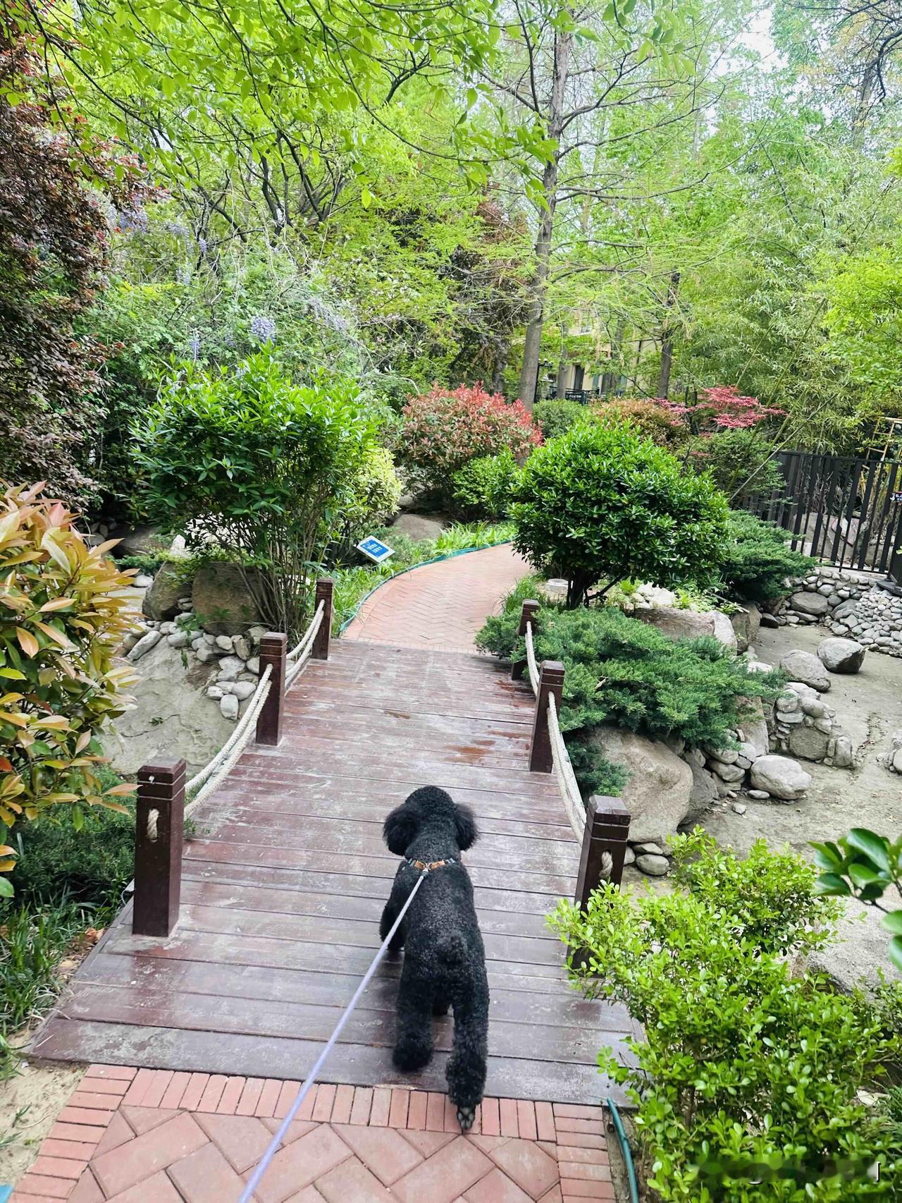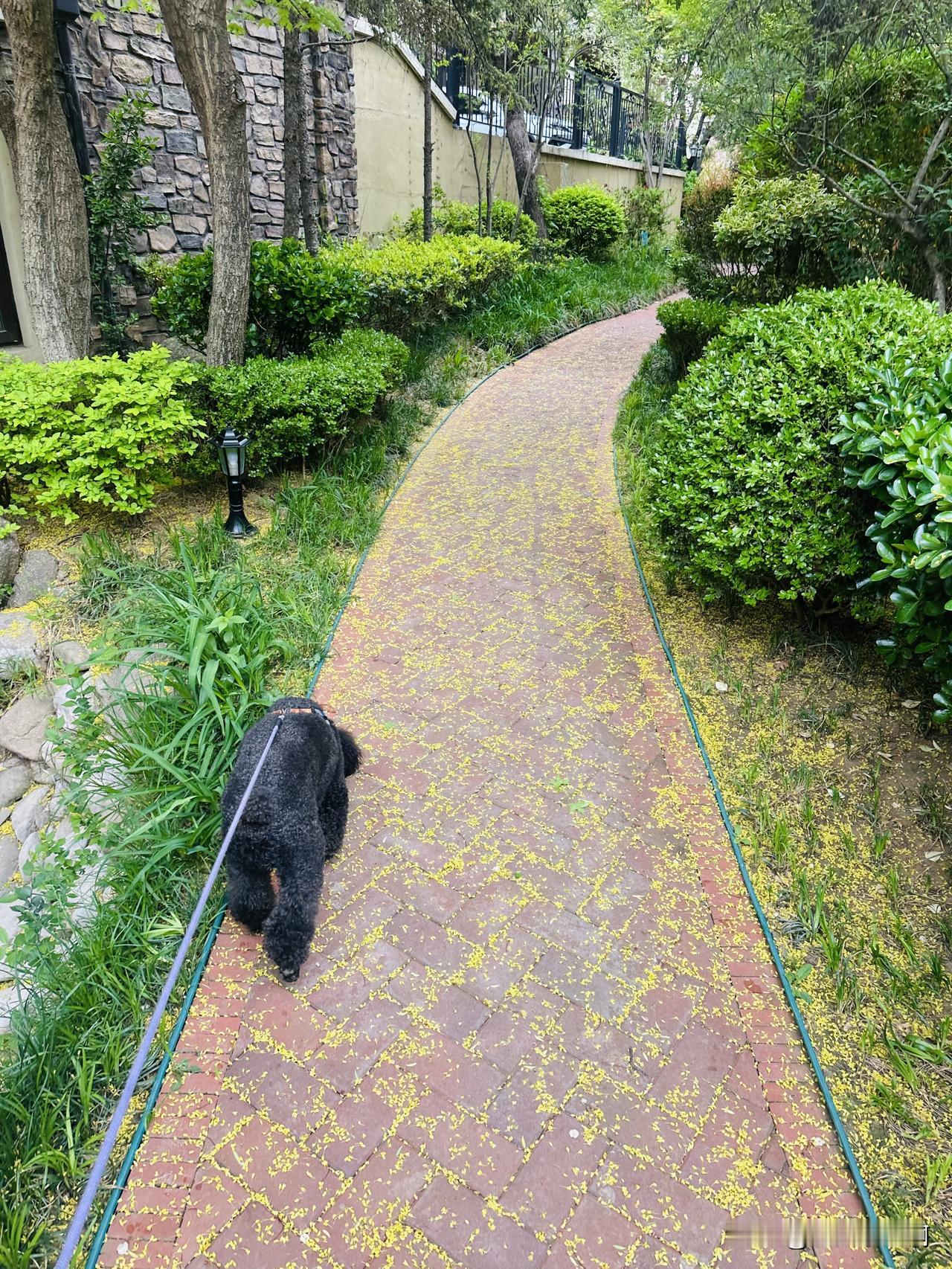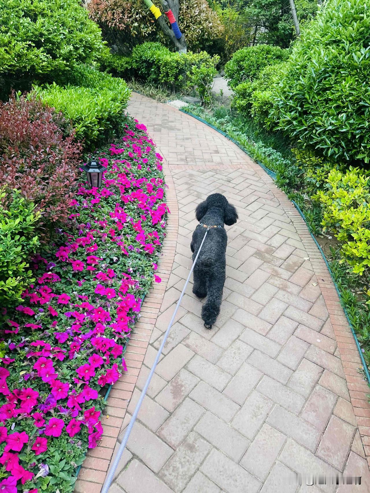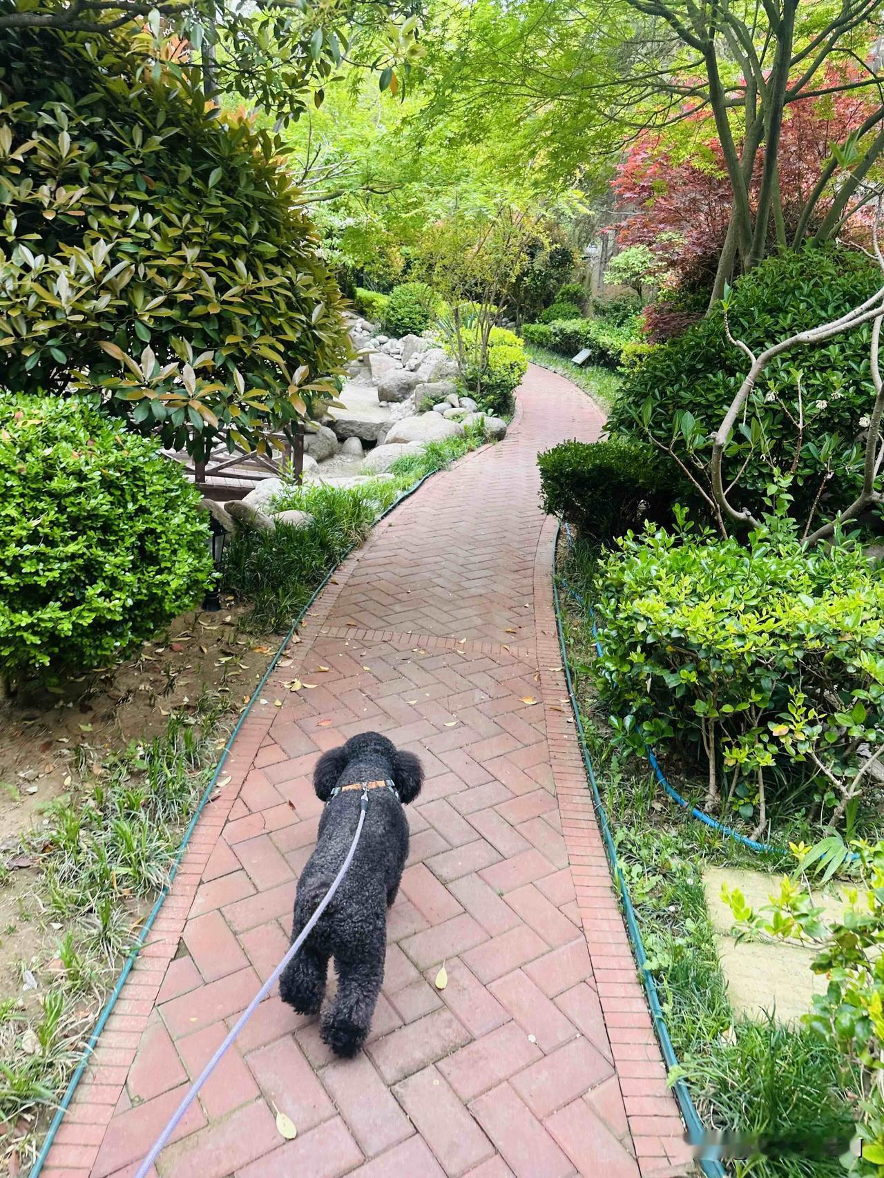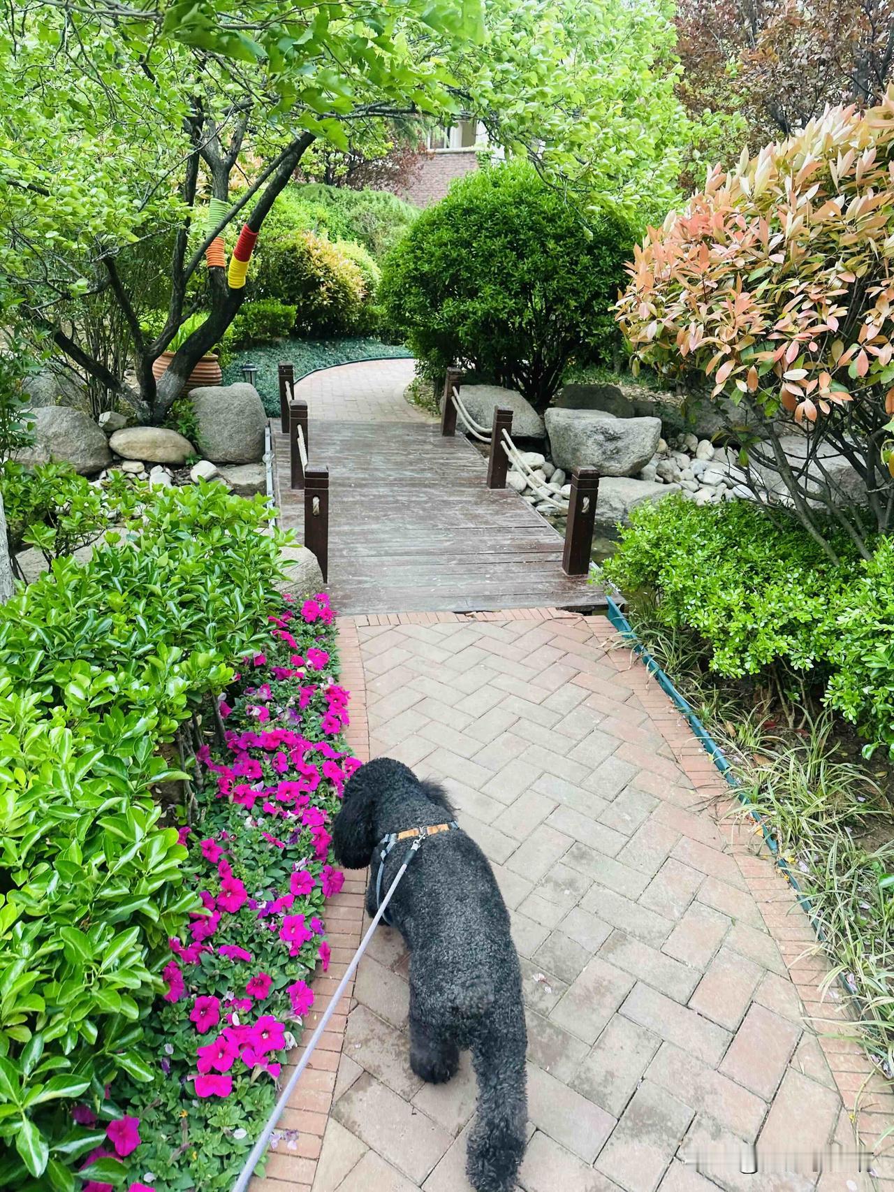穿上衣服绑上狗绳在小区院子里溜达了一圈。