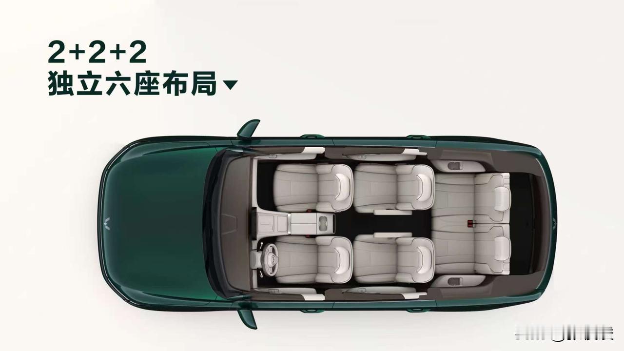 车身尺寸分别为:长4980mm、宽1930mm、高1760mm,轴距直接拉到2950mm。2+2+2的六座布局,三排腿部空间标了850mm,脚底下还做了掏空。这个数据,在没有看到实车前,至少说明它没打算让第三排沦为摆设。插混版给了260公里纯电续航(CLTC),同价位里这个数挺少见。